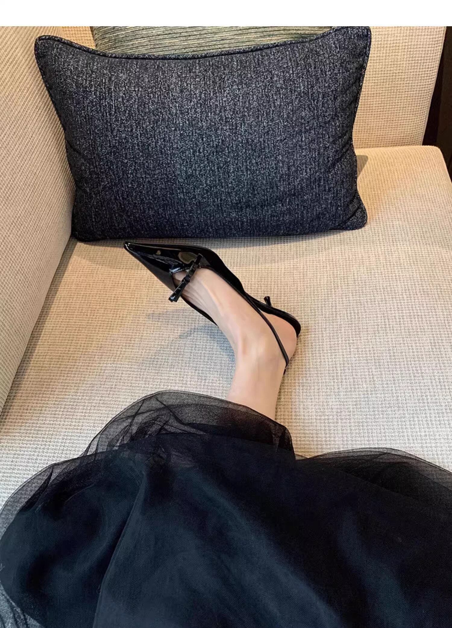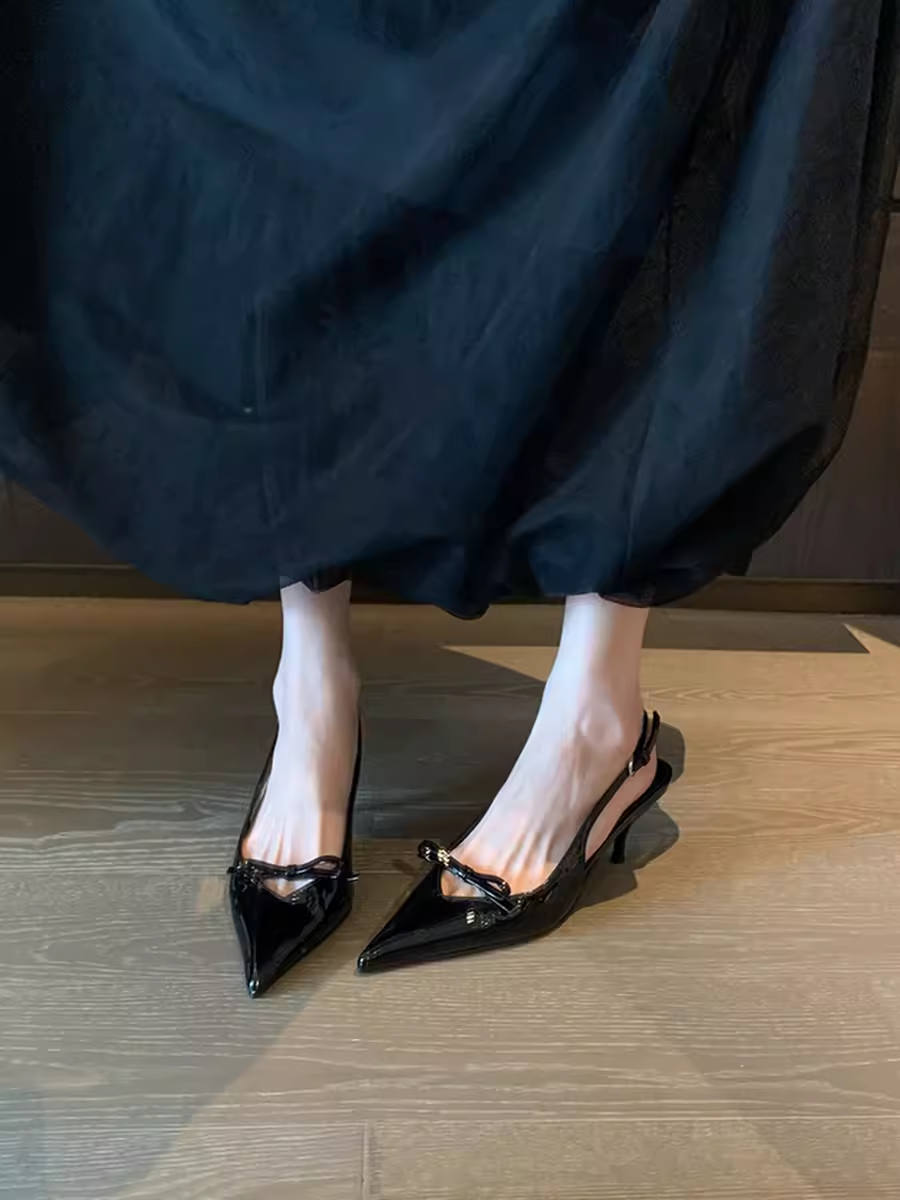 Модно! Сандалии Baotou для женщин на высоком каблуке для женщин 2025 Новый лук черный заостренные пальцы с тонким качеством качества воздуха.