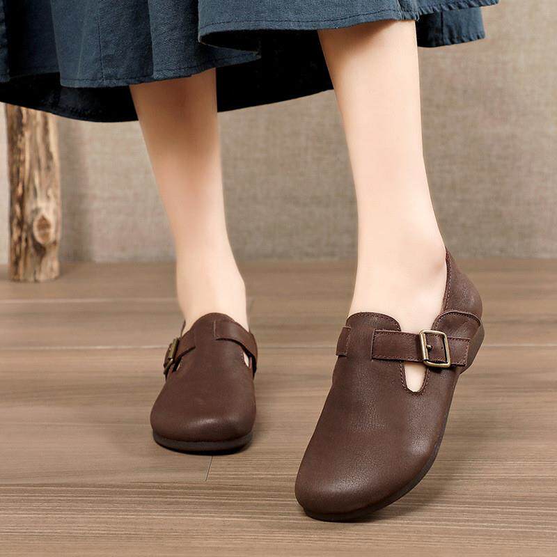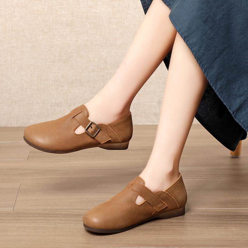 2024 Новые женские туфли ручной работы плоская дна круглая голова и легкая крепежная пряжка для одиночной обуви