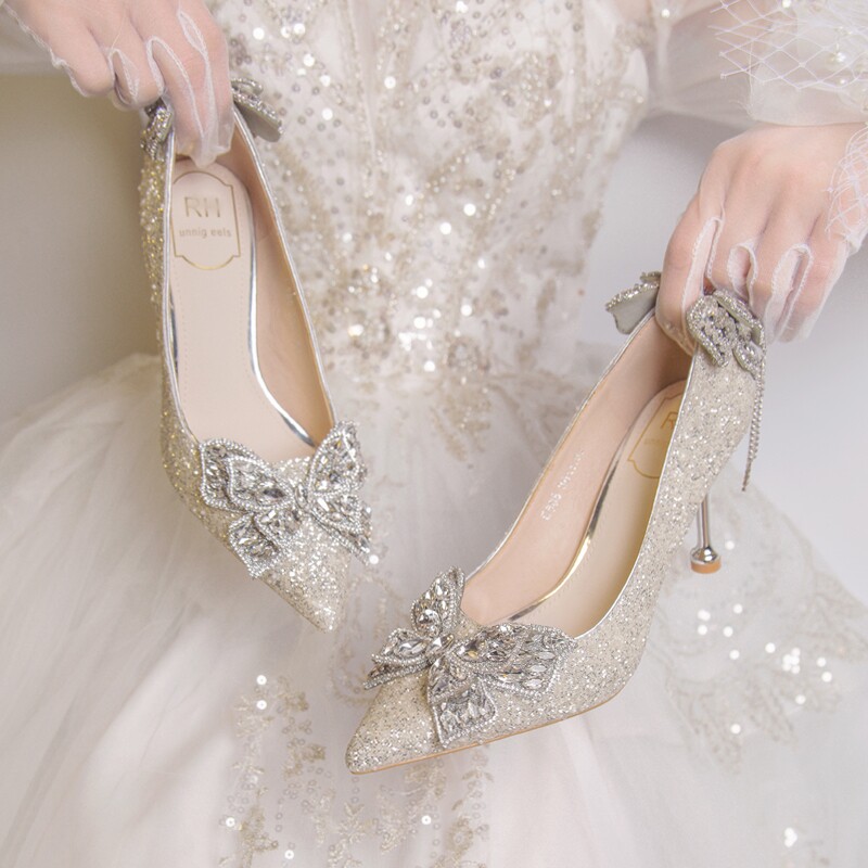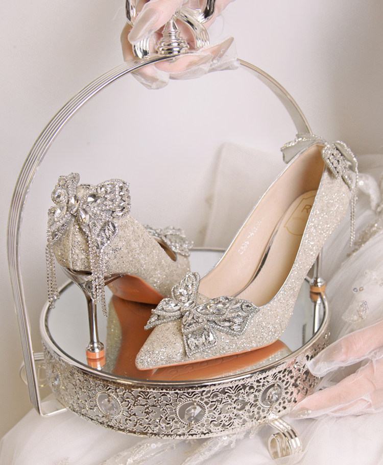 Серебряное свадебное платье, обувь, туфли на высоком каблуке, французский стиль, против усталых ног, 18 лет