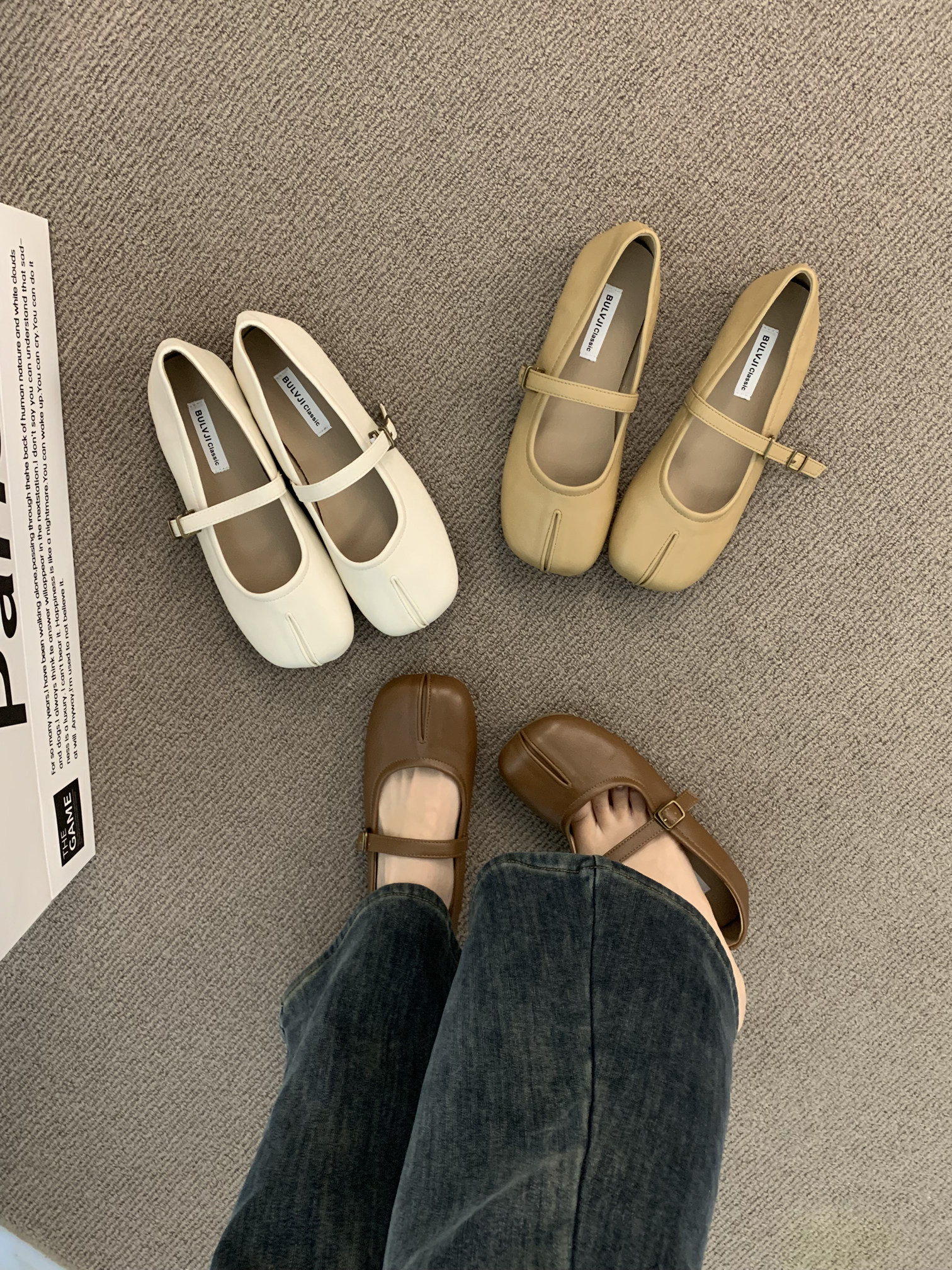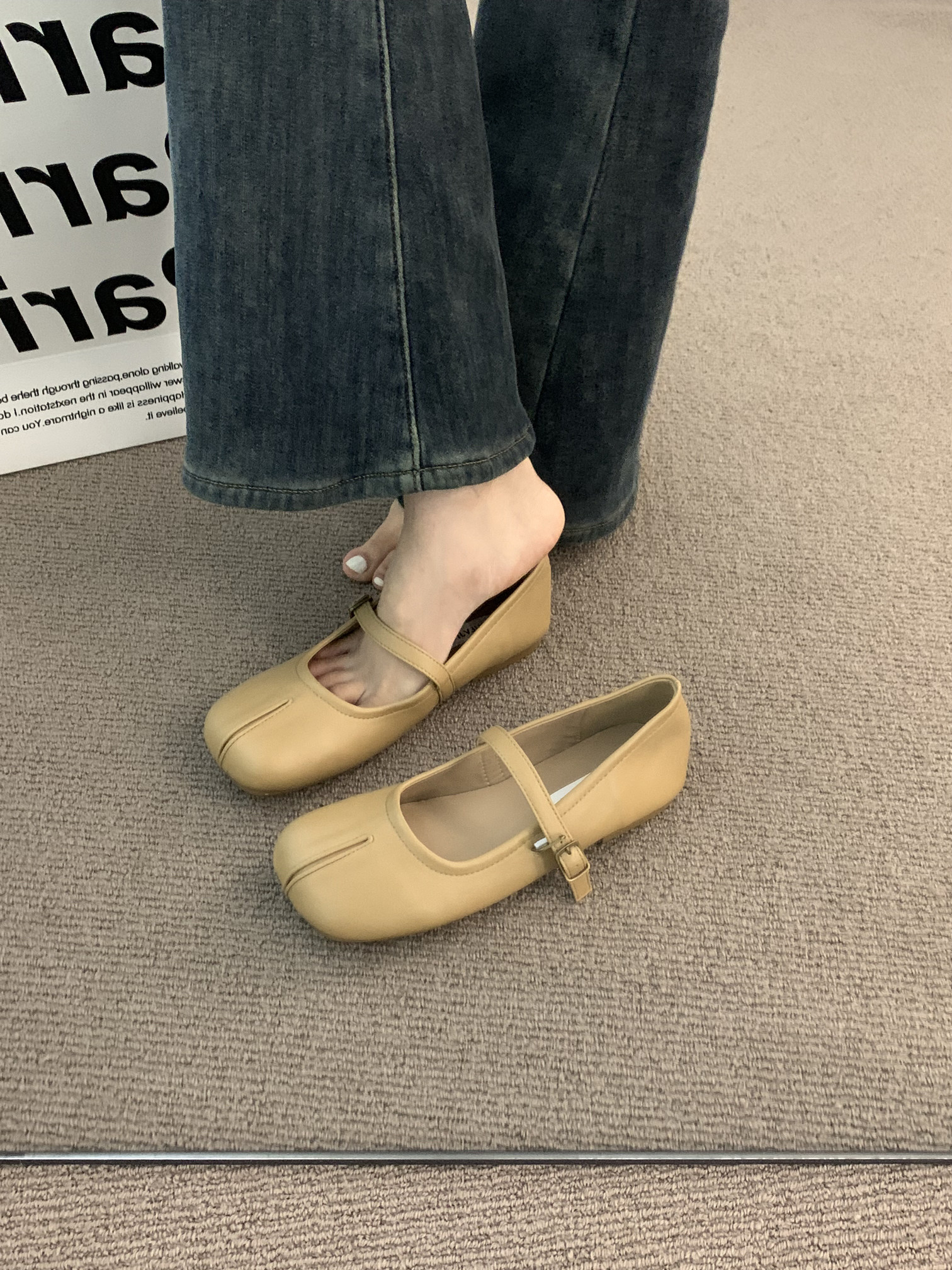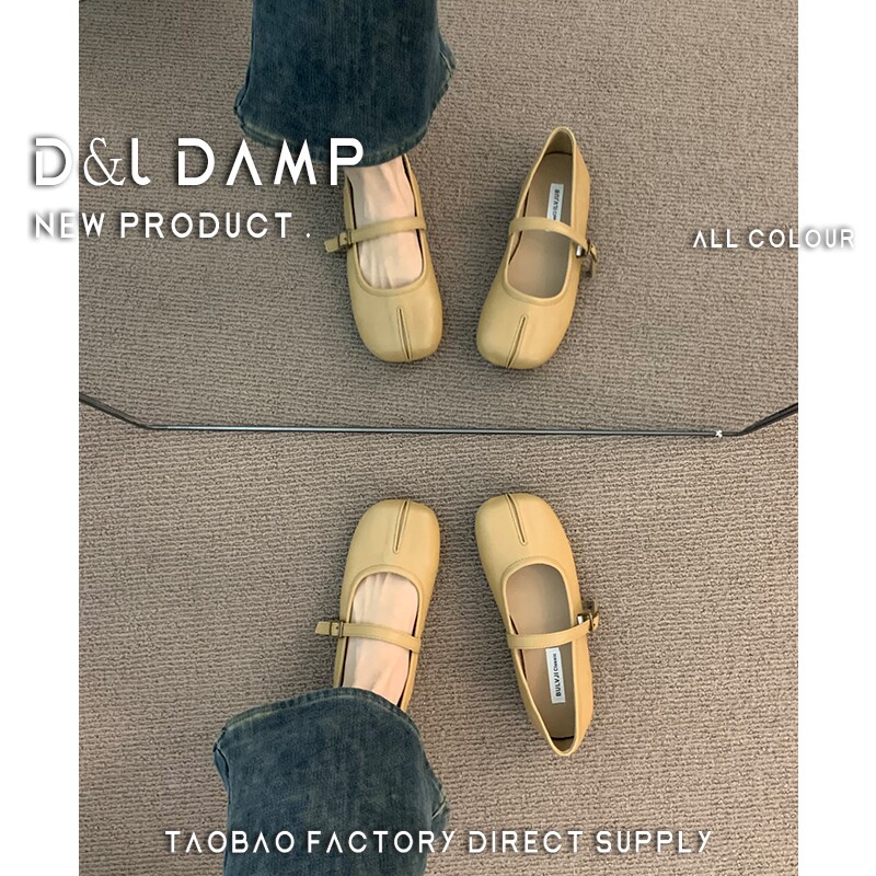 Квартира -Поттхот нежные ночные туфли французские туфли одиночные туфли, женская весна и осенняя мягкая база, Toe Mary Jane Scoop Shoes.
