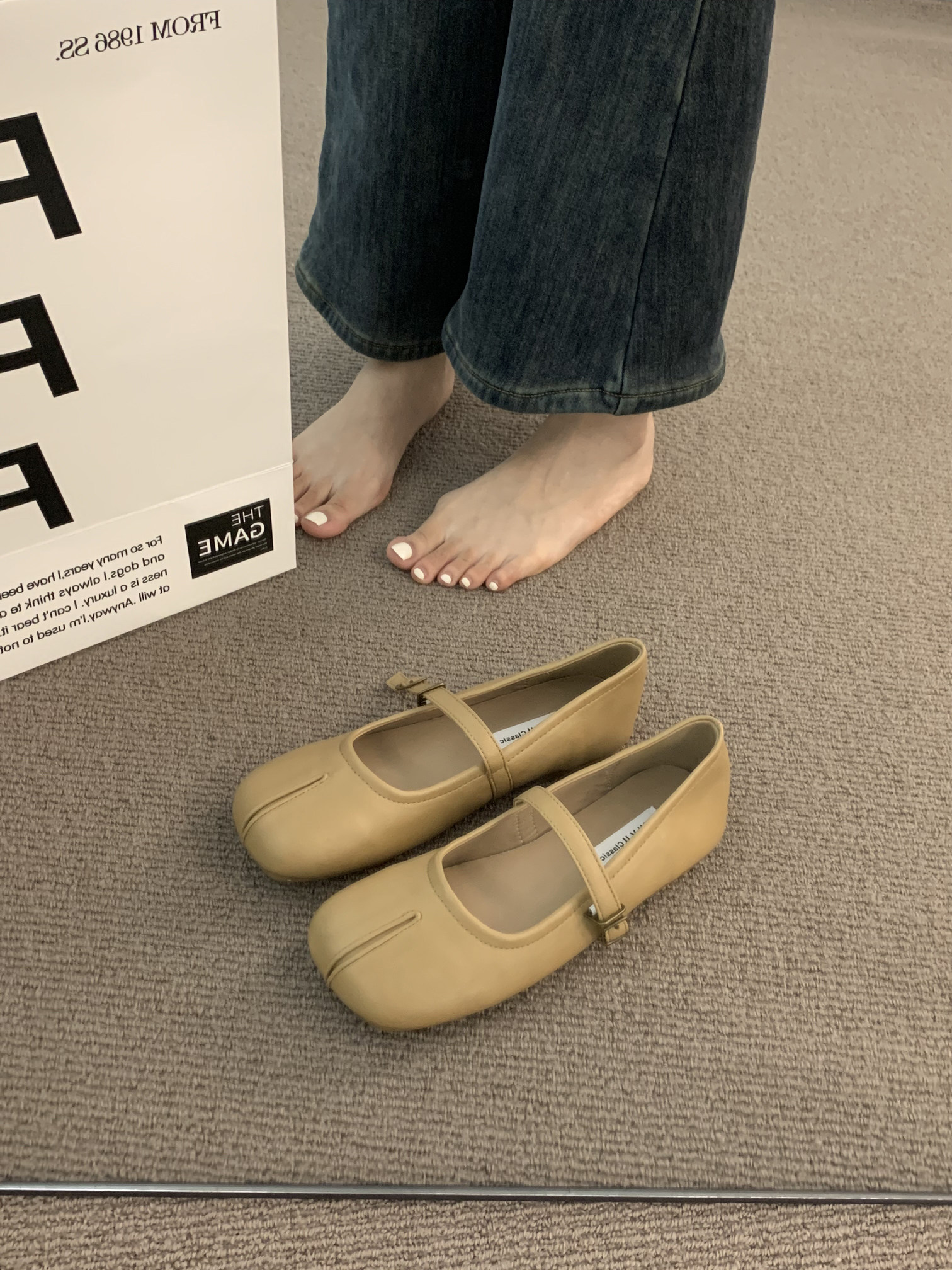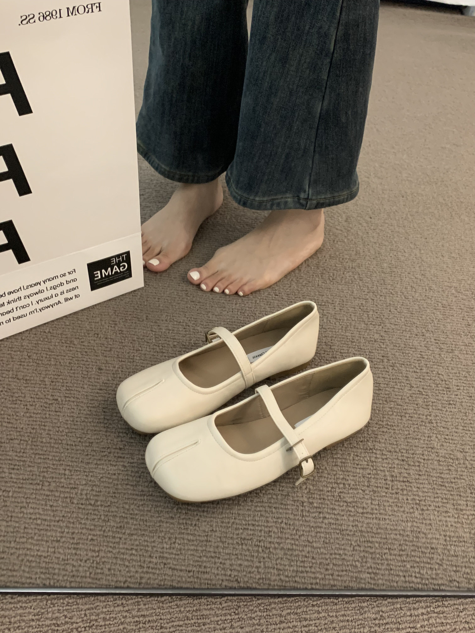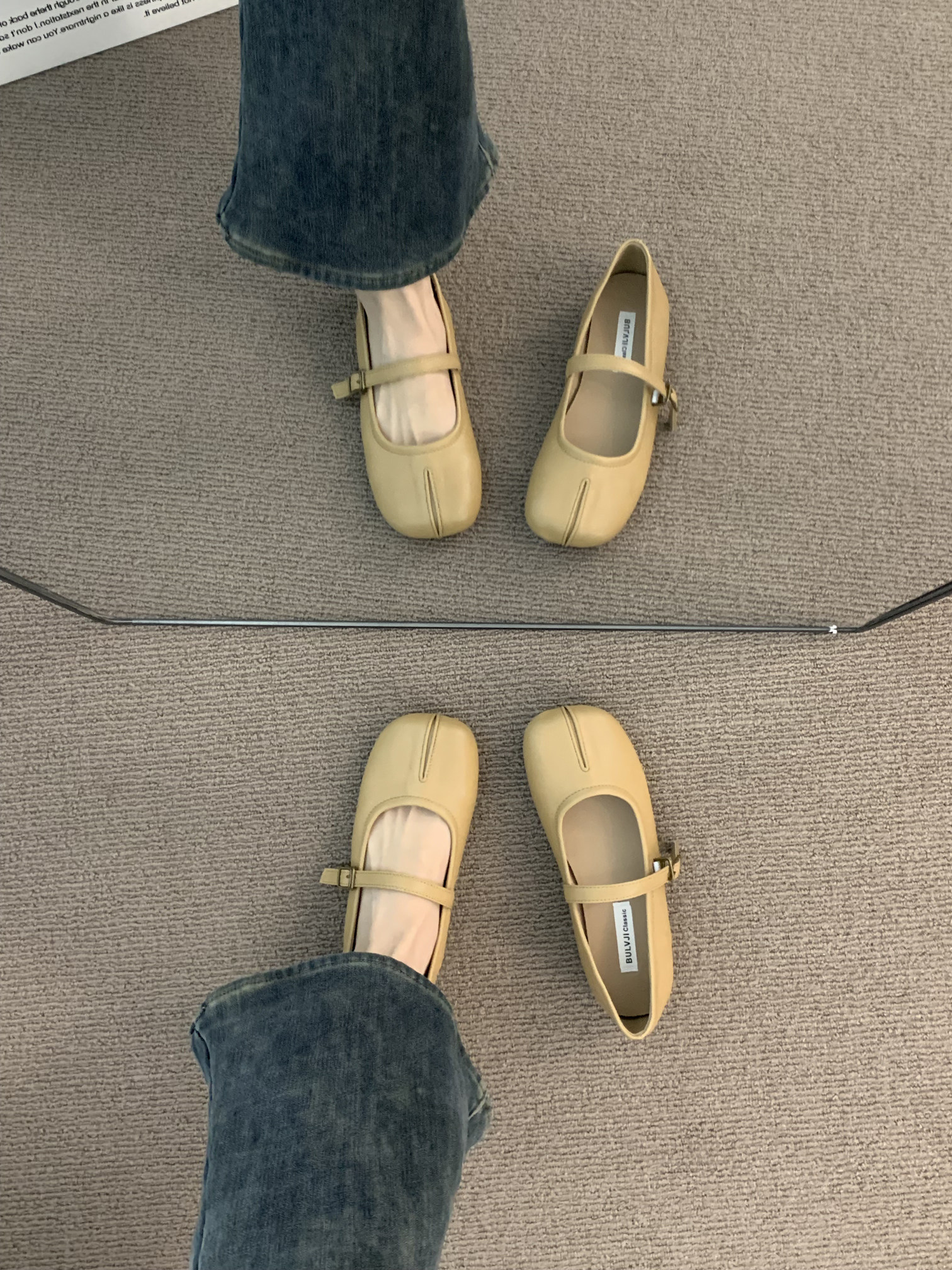 Квартира -Поттхот нежные ночные туфли французские туфли одиночные туфли, женская весна и осенняя мягкая база, Toe Mary Jane Scoop Shoes.