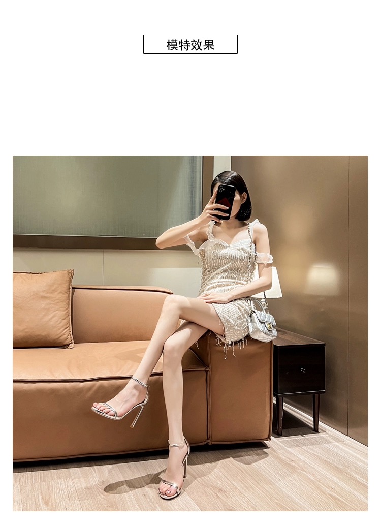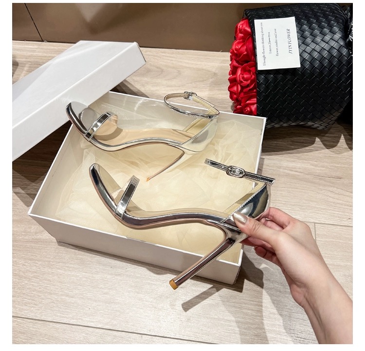 Серебряная летняя сетчатая сексуальная обувь на высоком каблуке, сандалии, популярно в интернете