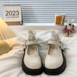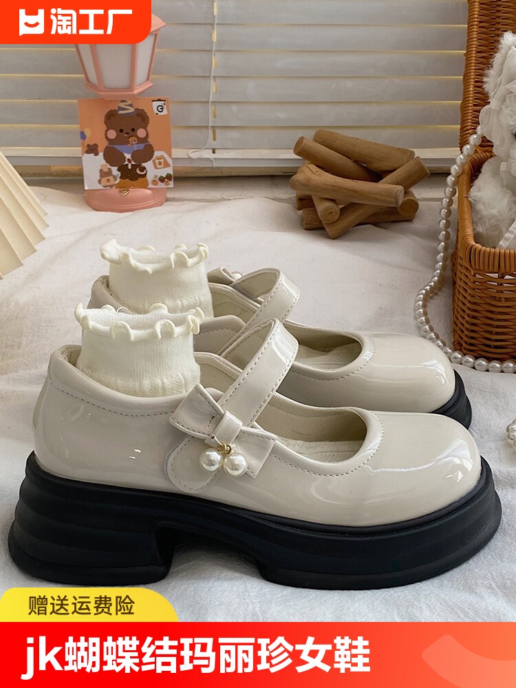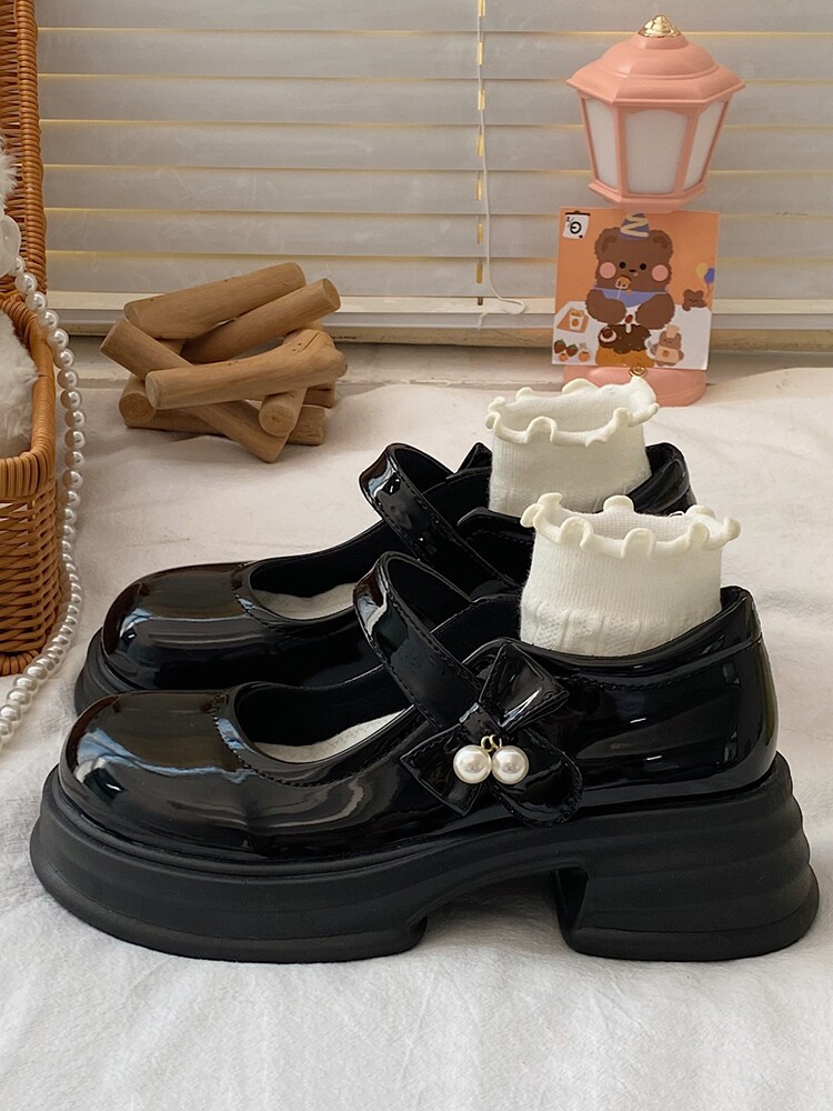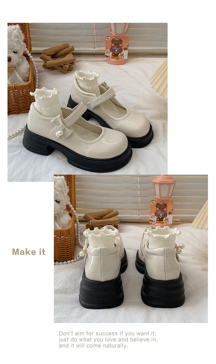 Универсальная летняя японская обувь для кожаной обуви на платформе с бантиком