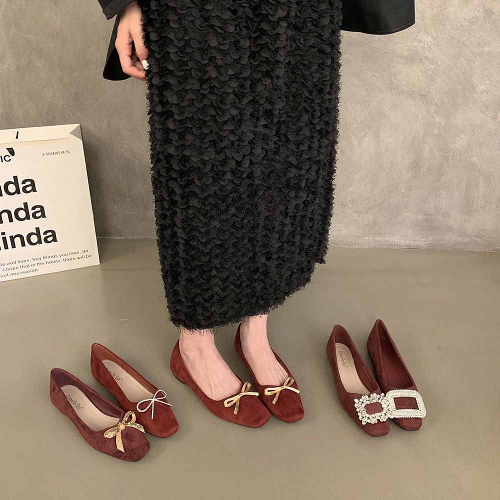 Красные свадебные туфли, летняя плоская подошва обувь, в корейском стиле, французский ретро стиль, мягкая подошва