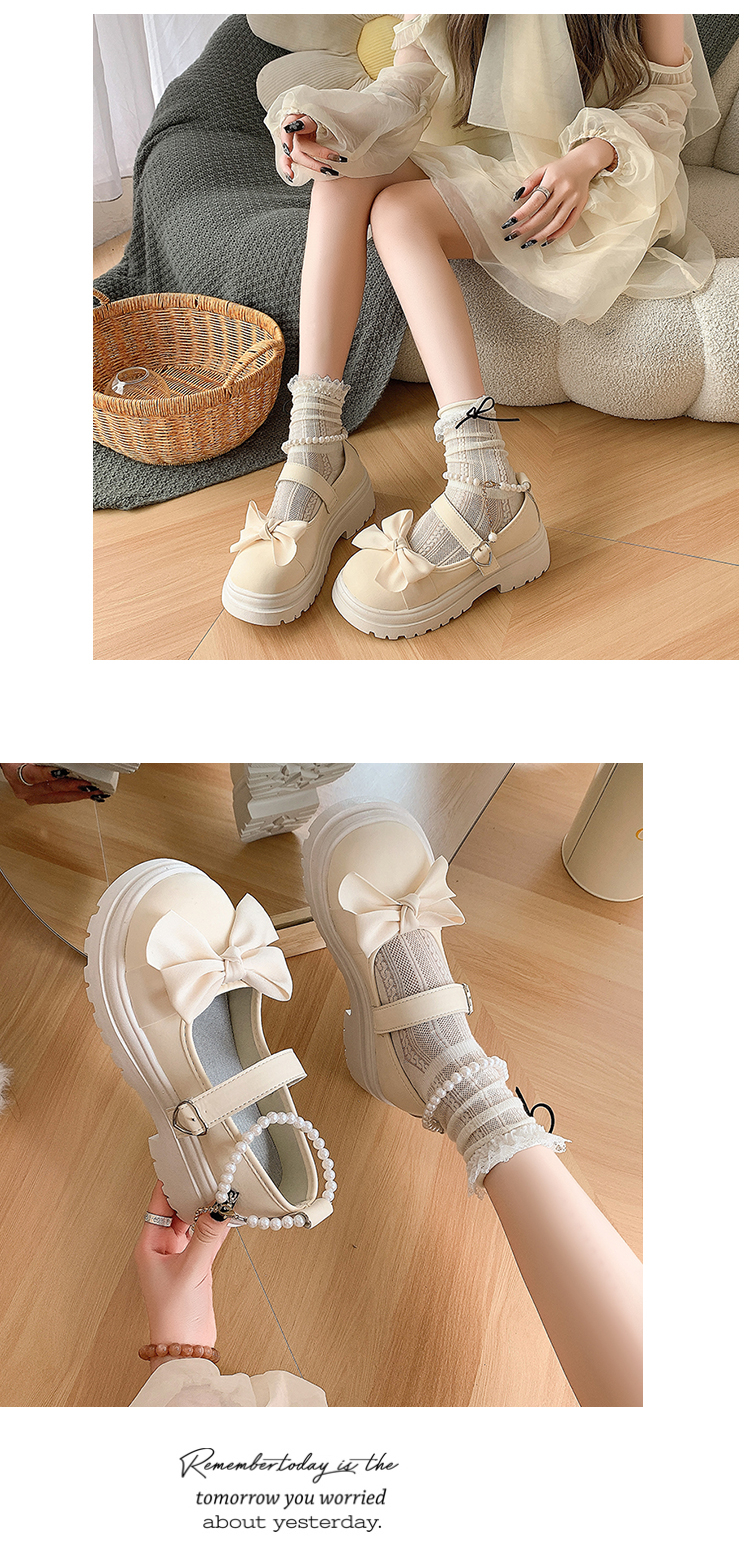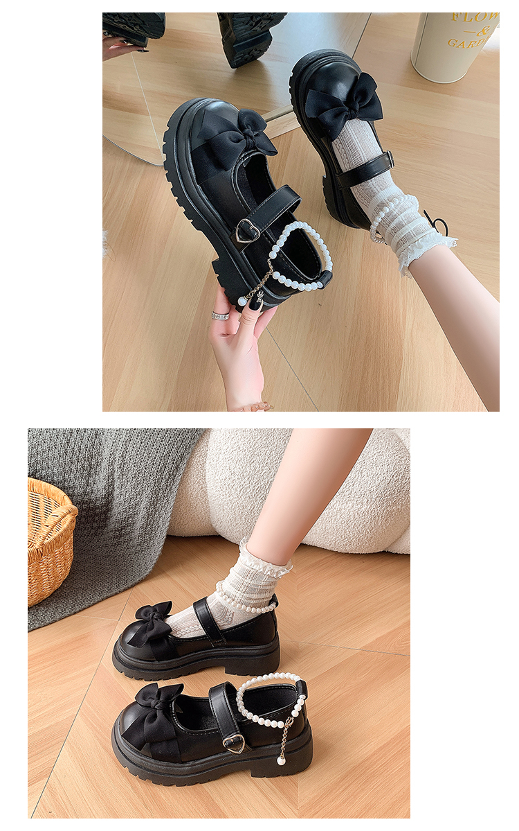 Японская высокая летняя обувь с бантиком, туфли из жемчуга в английском стиле для кожаной обуви, в британском стиле