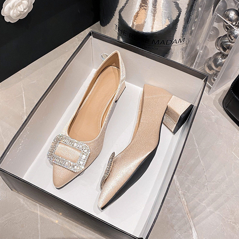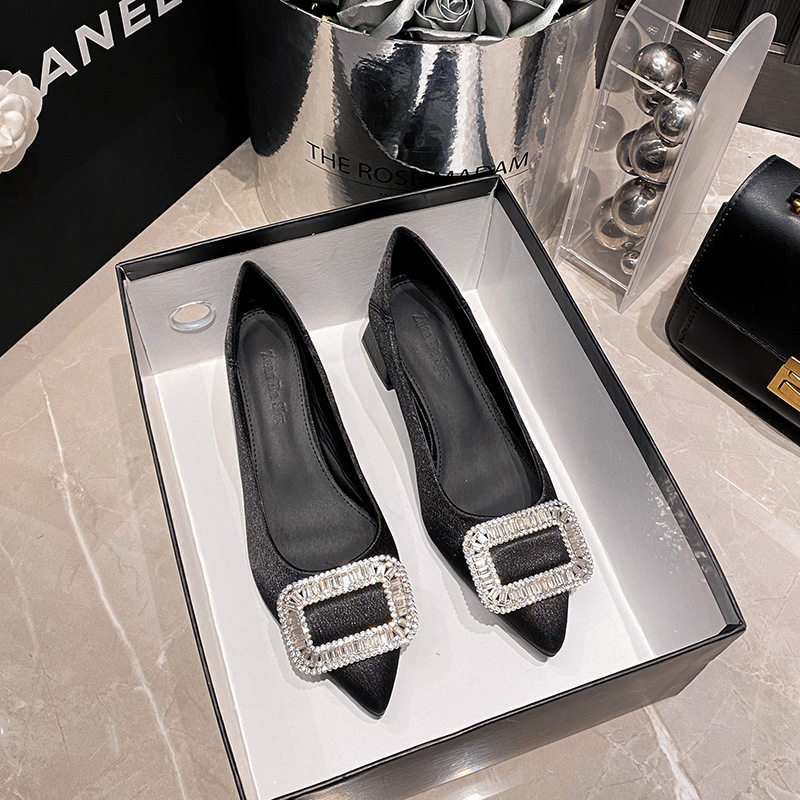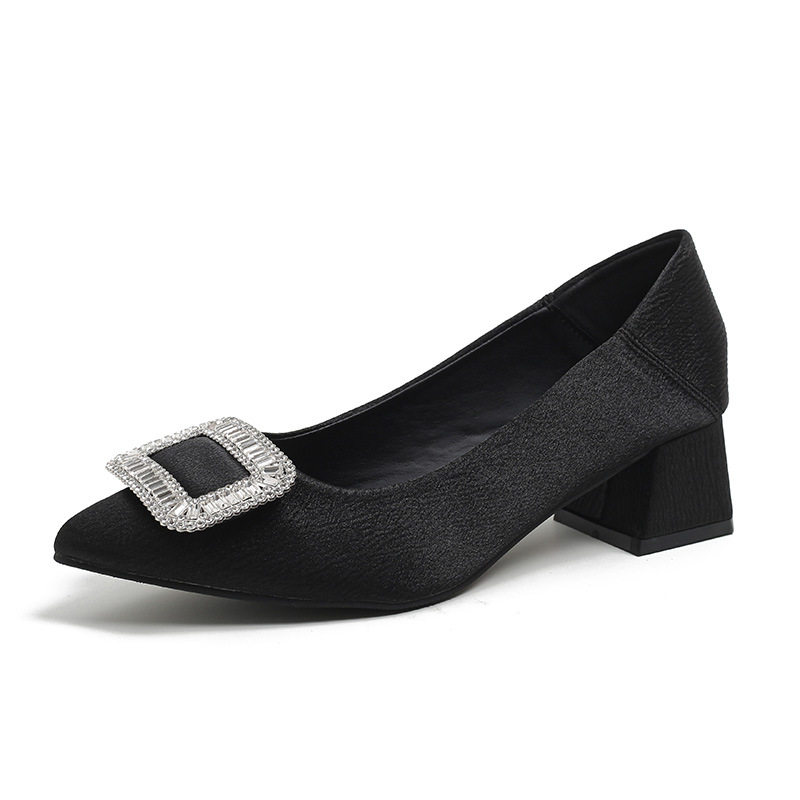 Легкие роскошные высокие каблуки с квадратными пряжками, толстые каблуки, черные рабочие туфли, одиночные туфли с острым носком, стиль богини темперамента, женская обувь большого размера от 41 до 43