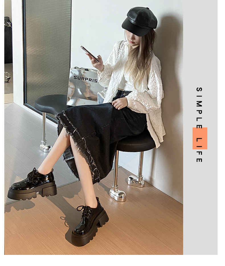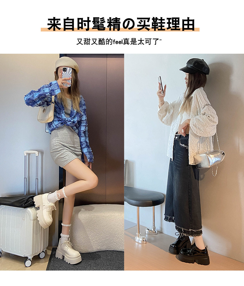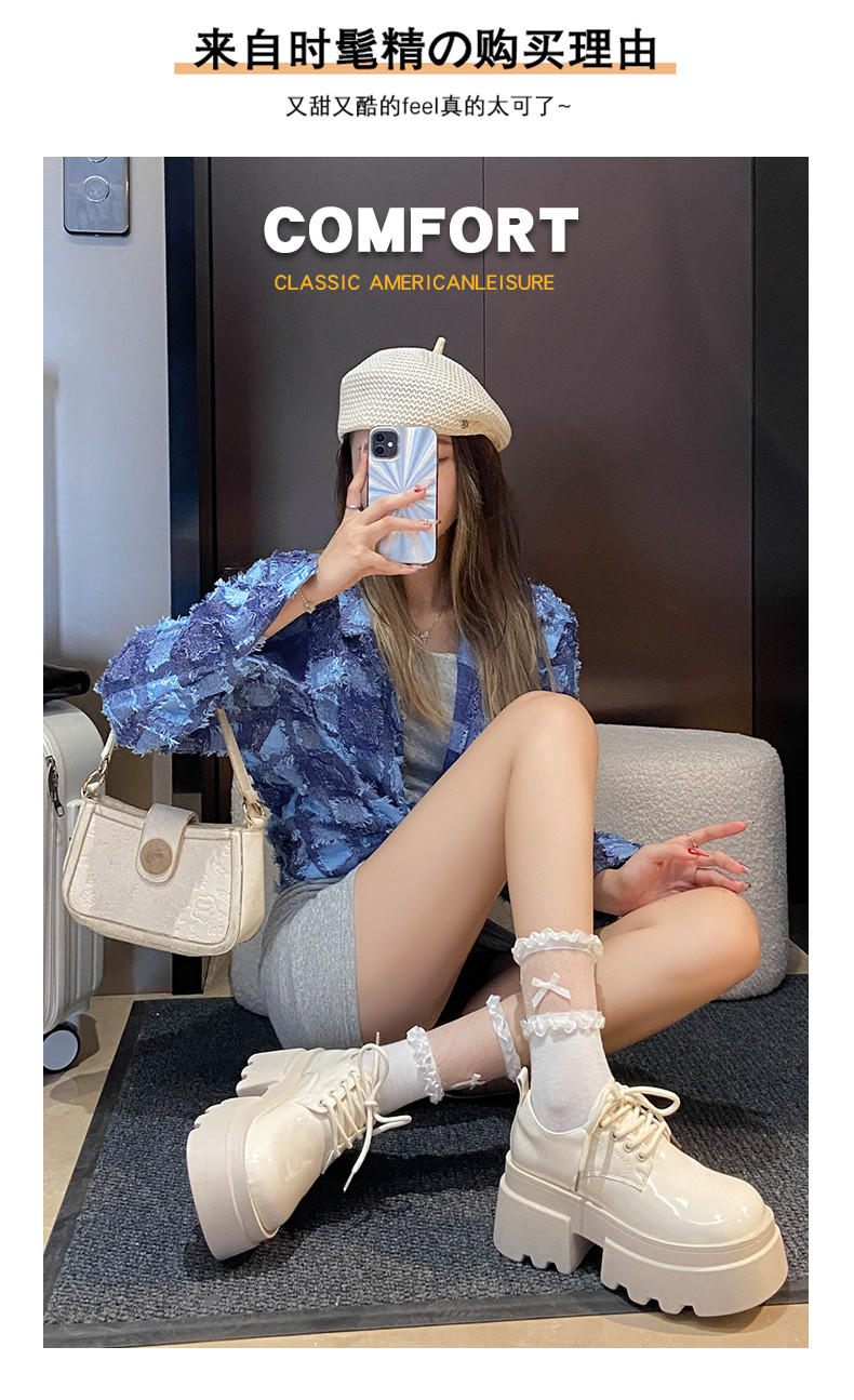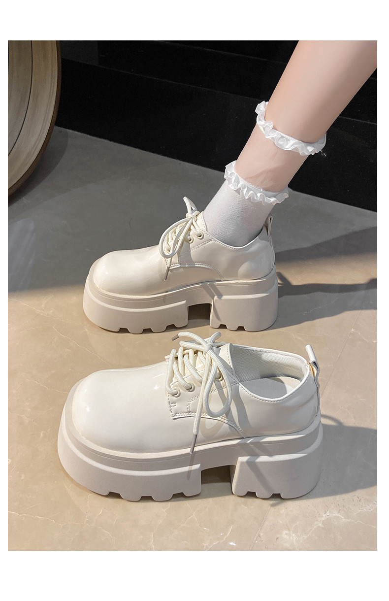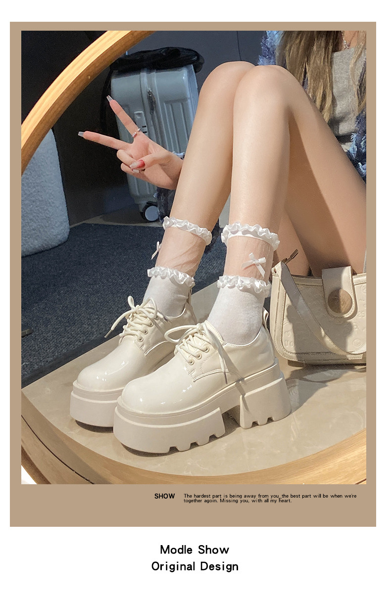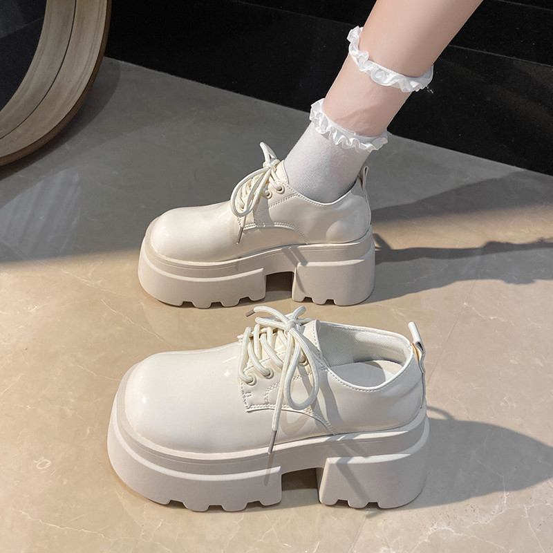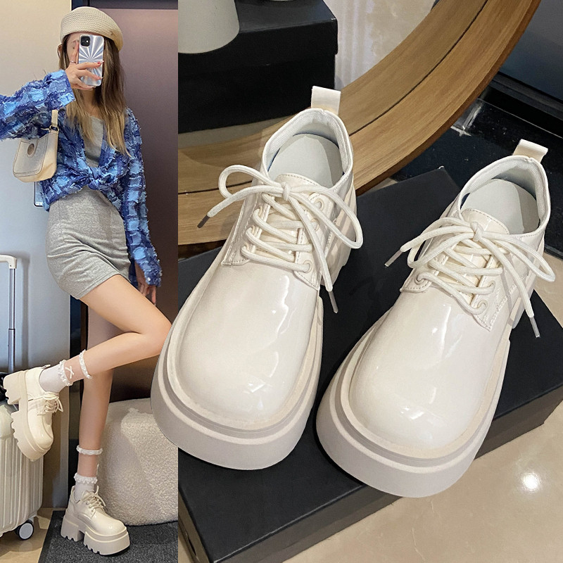 Японская бежевая обувь для отдыха для кожаной обуви, универсальные высокие лоферы на платформе, осенняя, тренд сезона