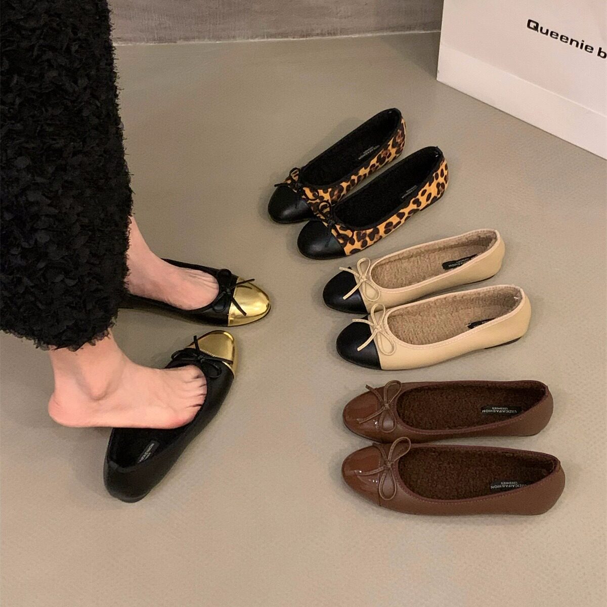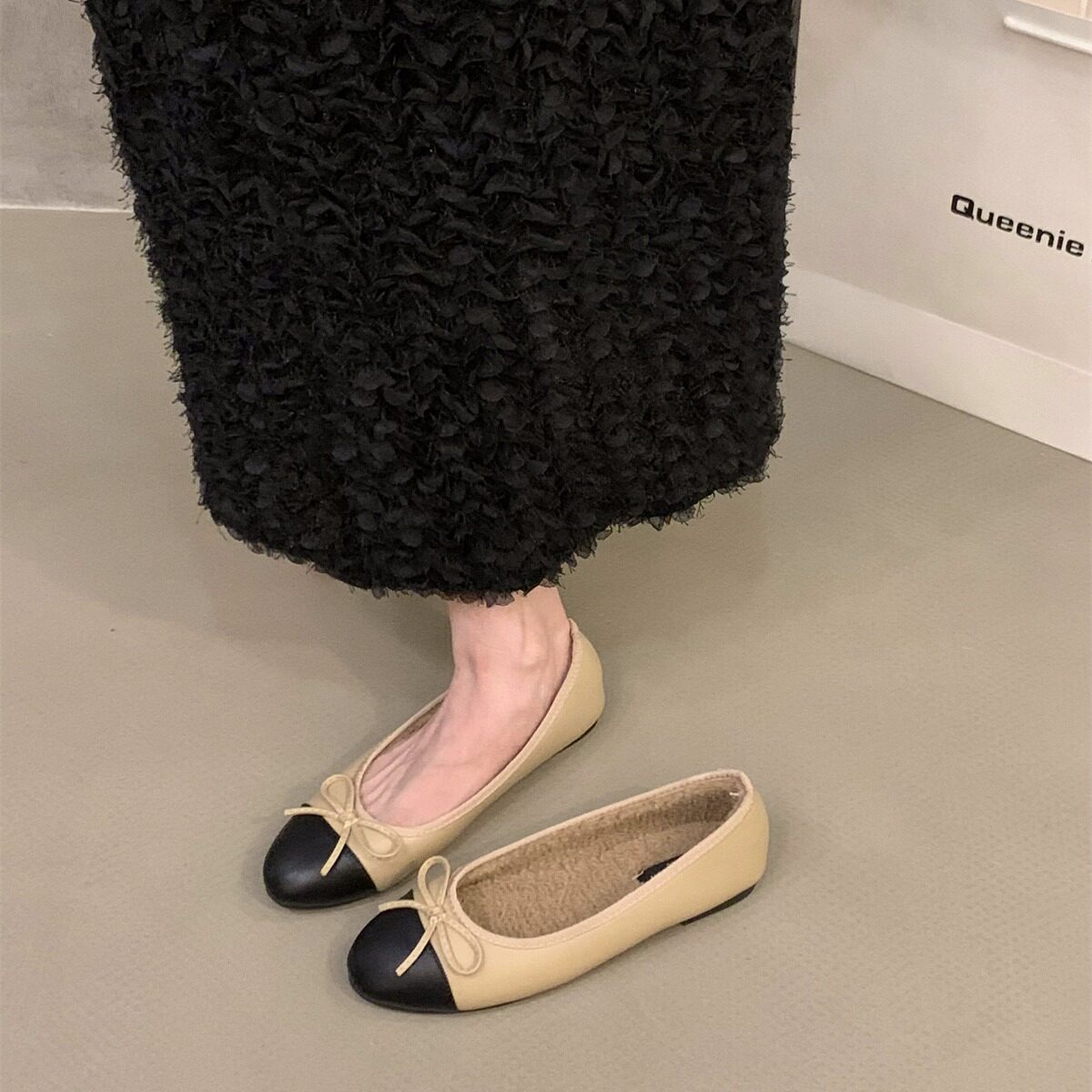Утепленная удерживающая тепло обувь с бантиком, французский стиль, в стиле Шанель