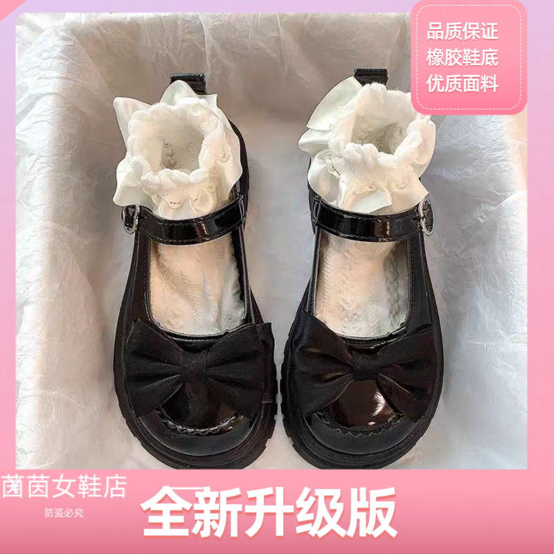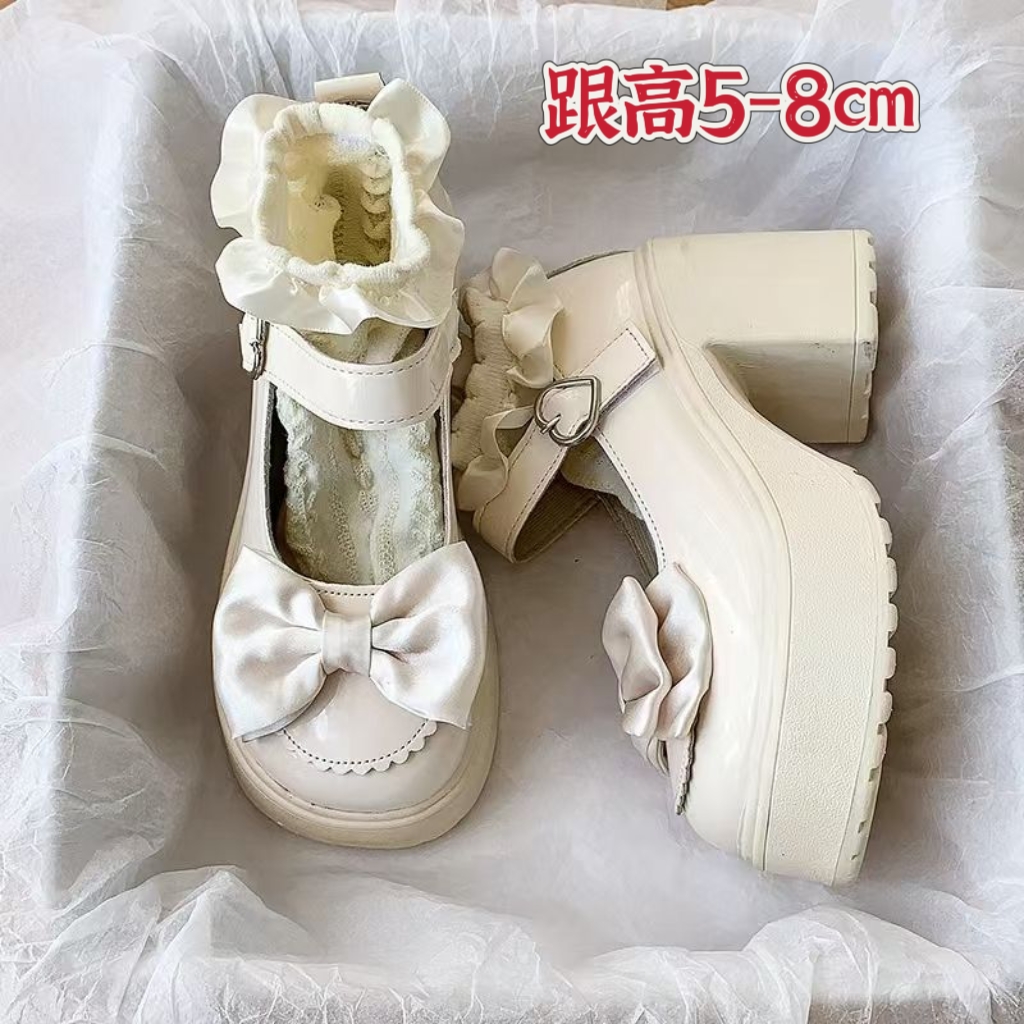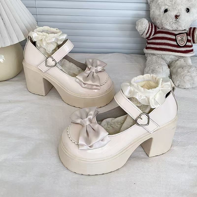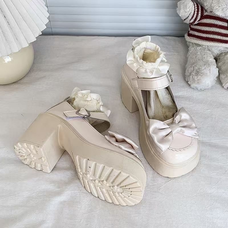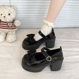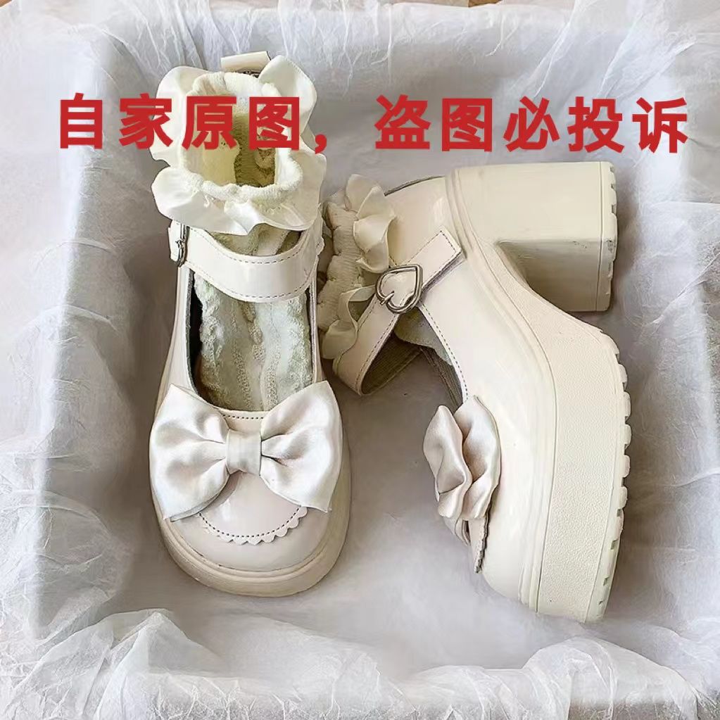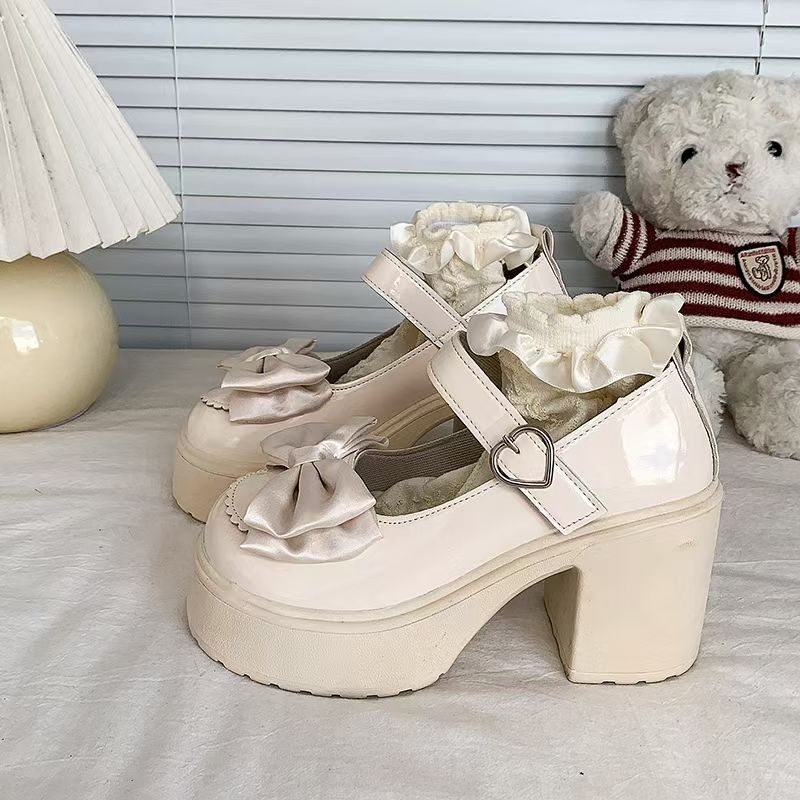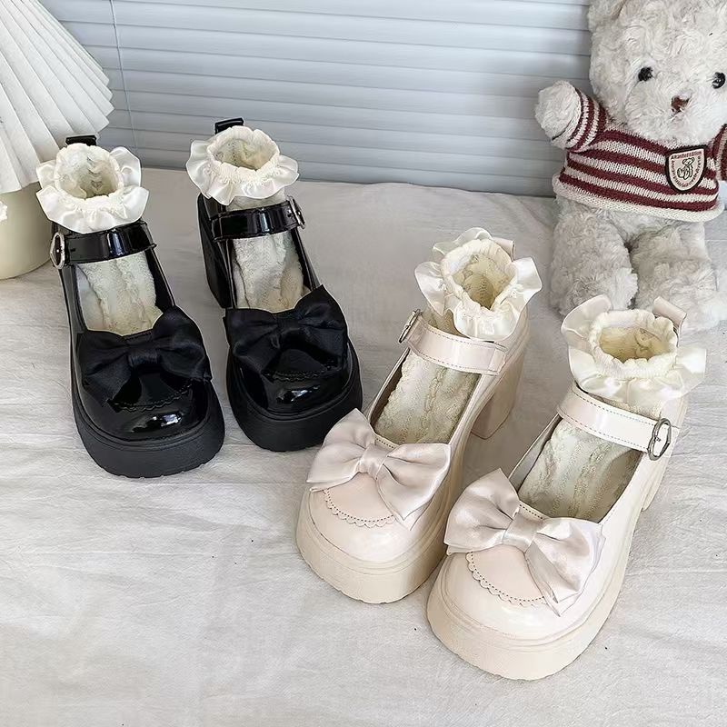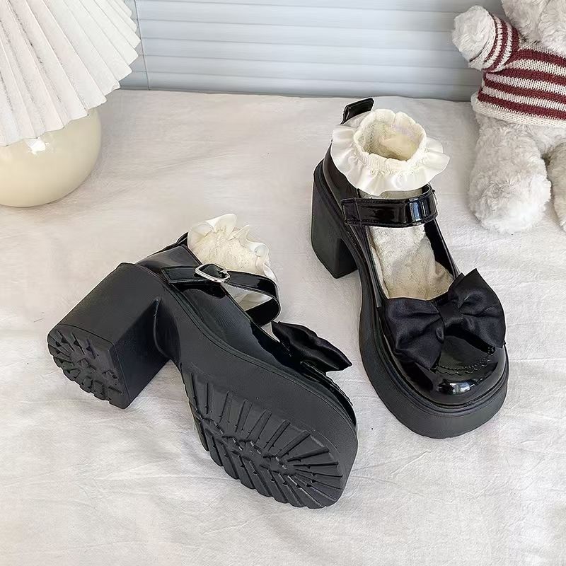 Высокие туфли, японская обувь для кожаной обуви на платформе с бантиком