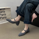Демисезонная обувь на высоком каблуке, утепленные туфли, в стиле Шанель, 2024 года
