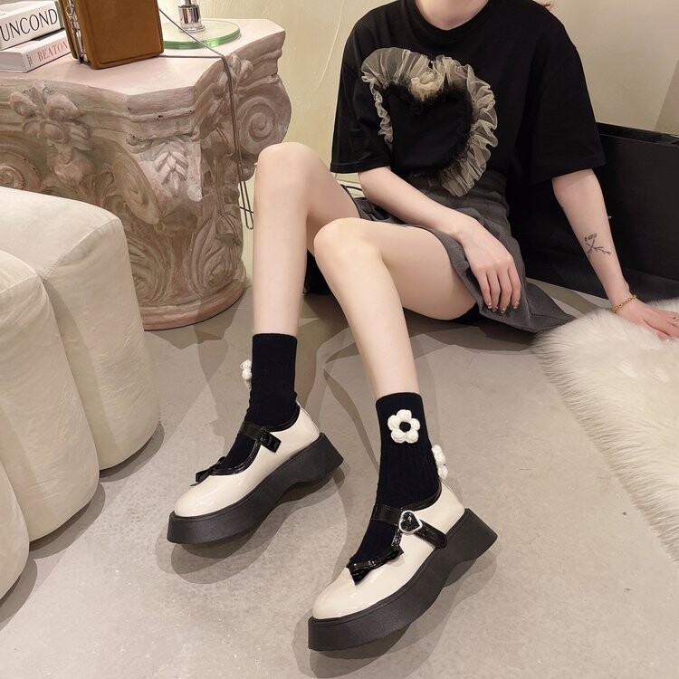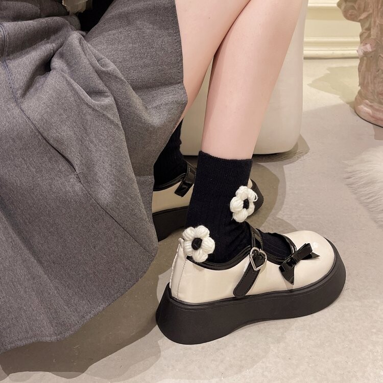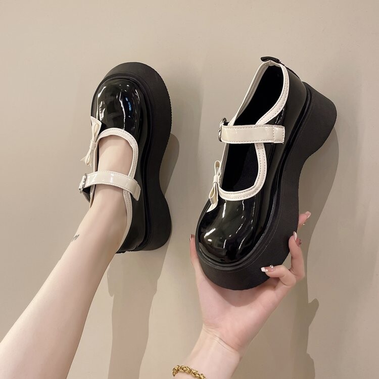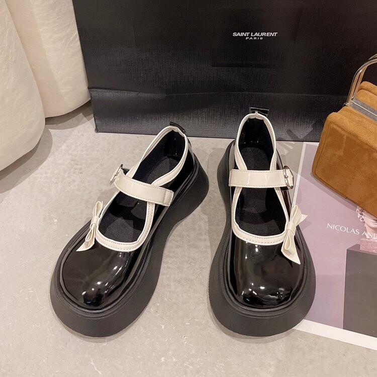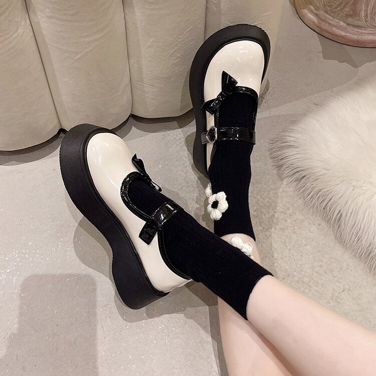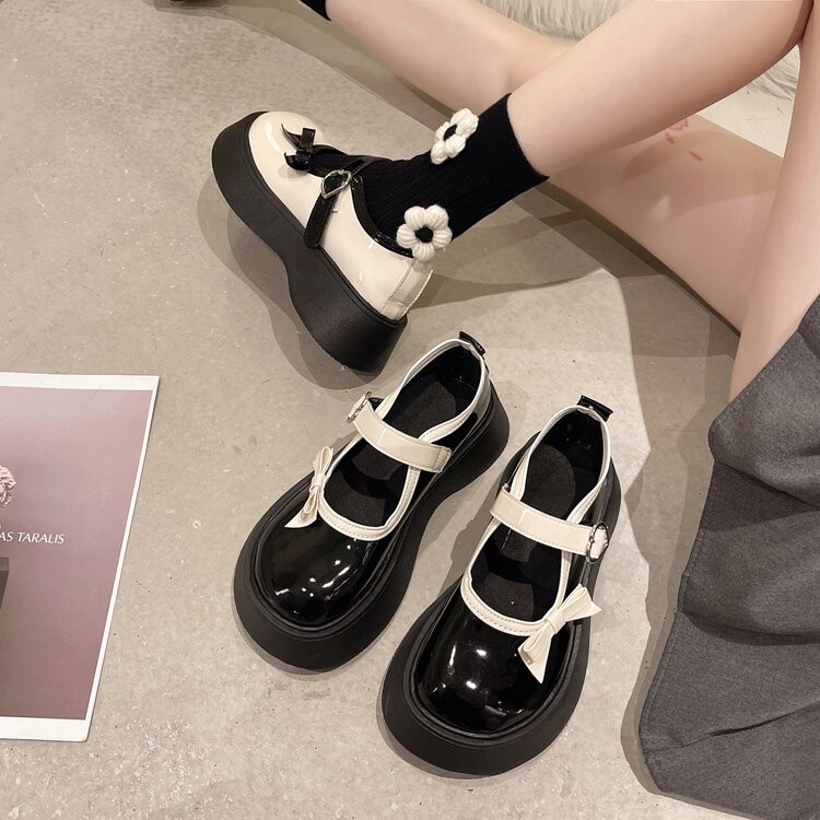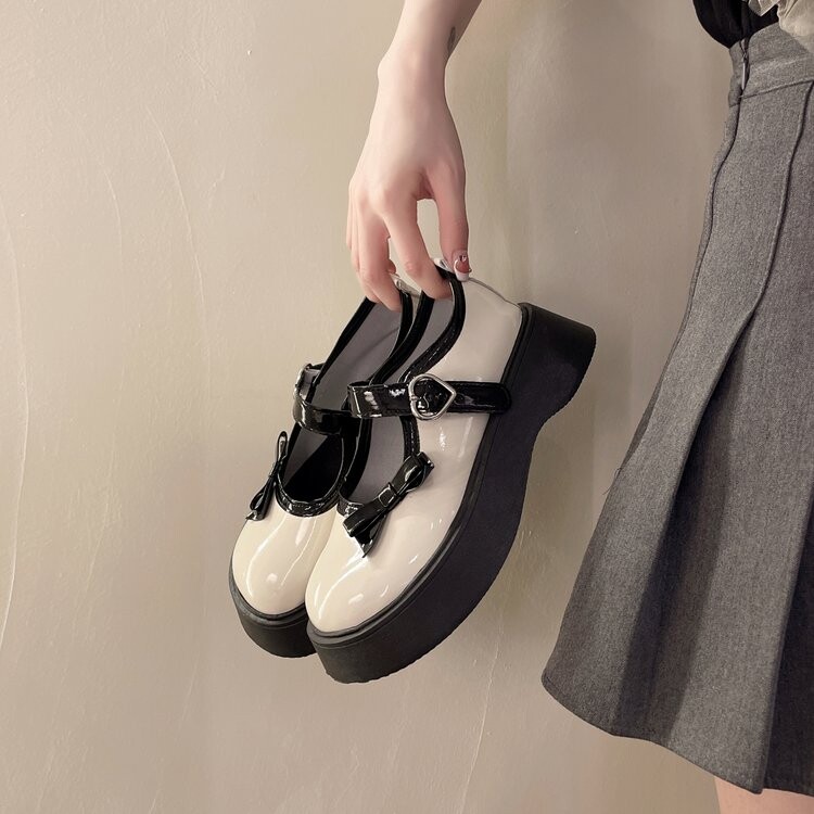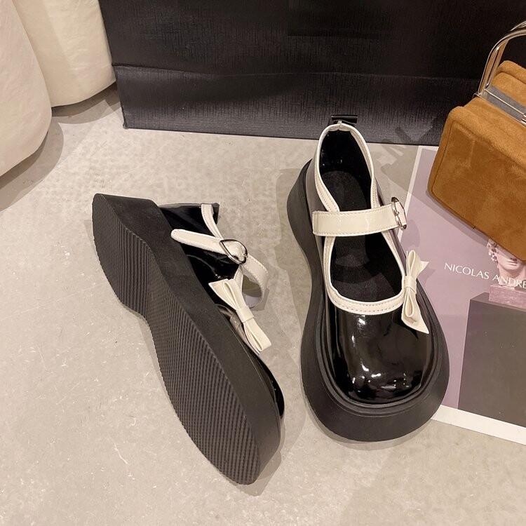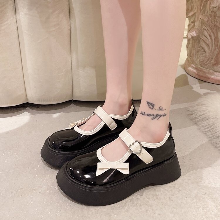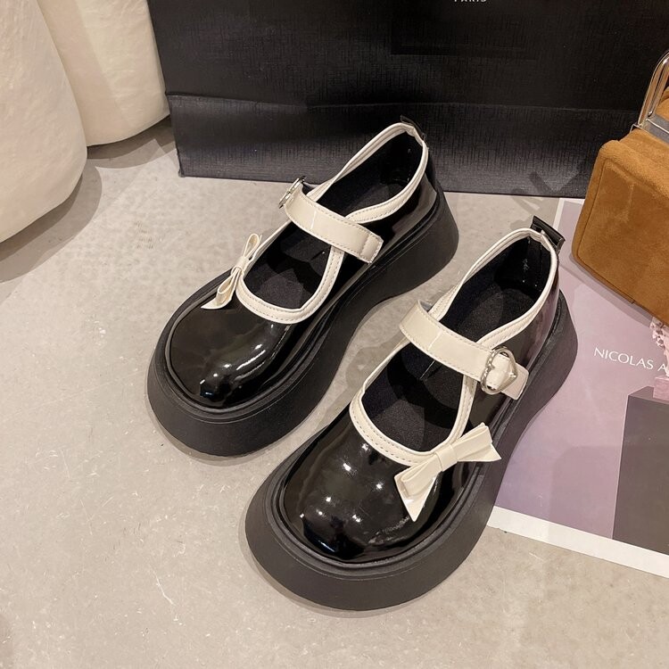 Японская обувь на платформе, лоферы для кожаной обуви с бантиком