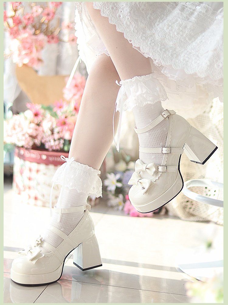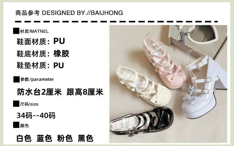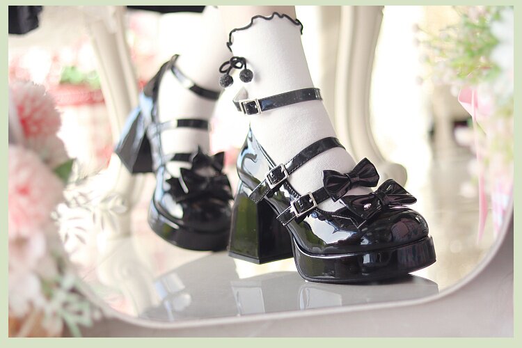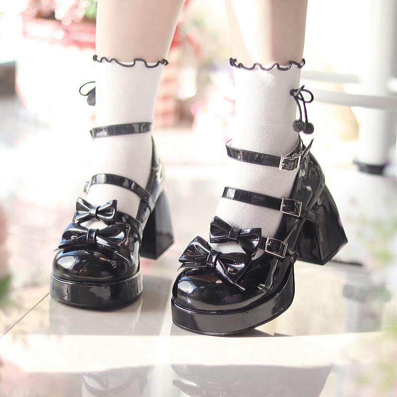 Оригинальные высокие элегантные туфли, универсальный японский ремень с бантиком, стиль Лолита