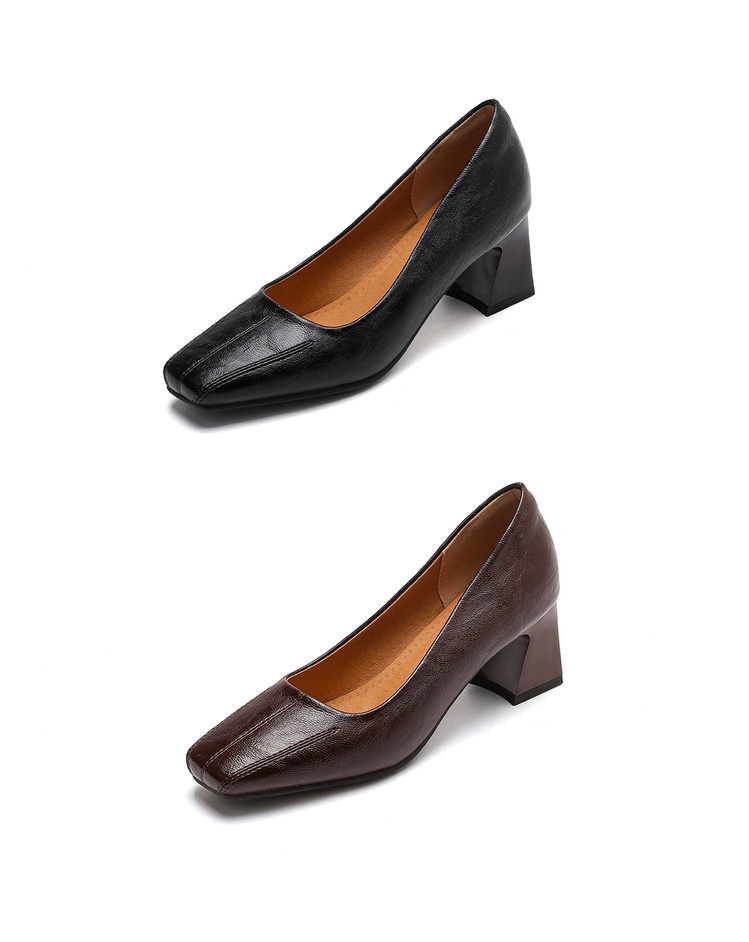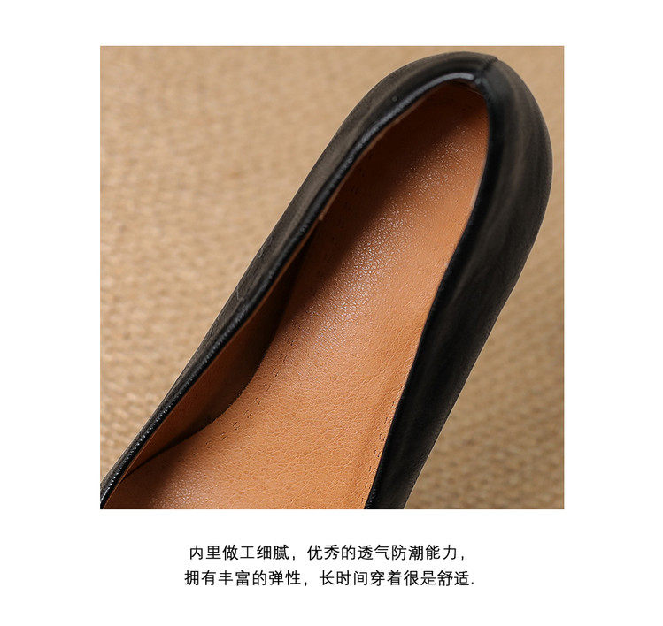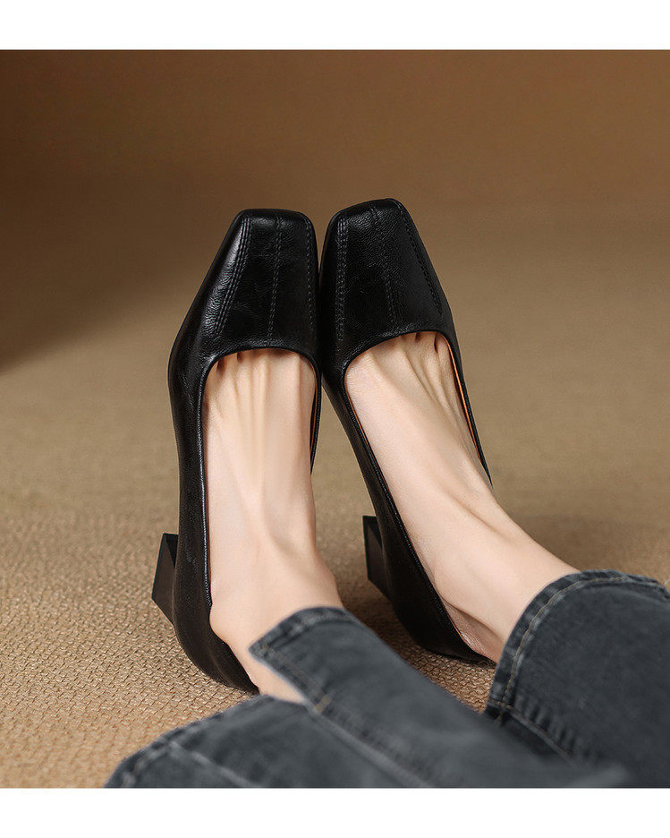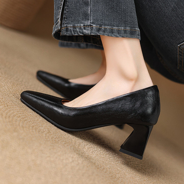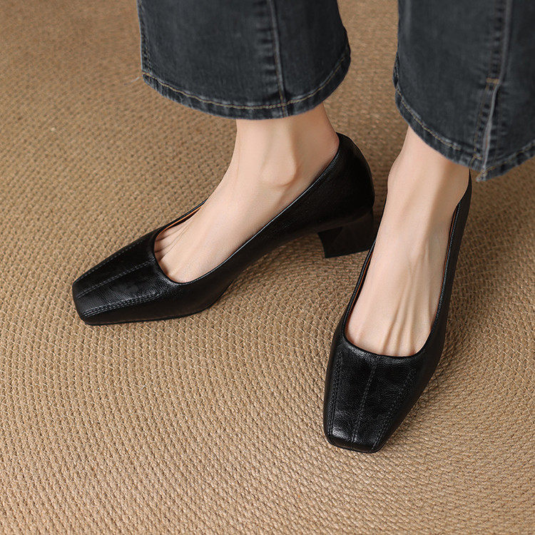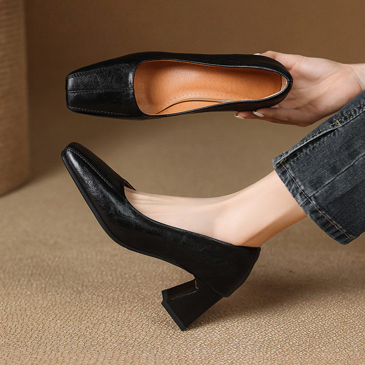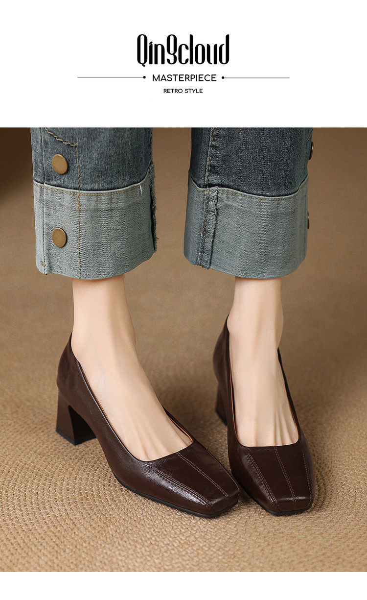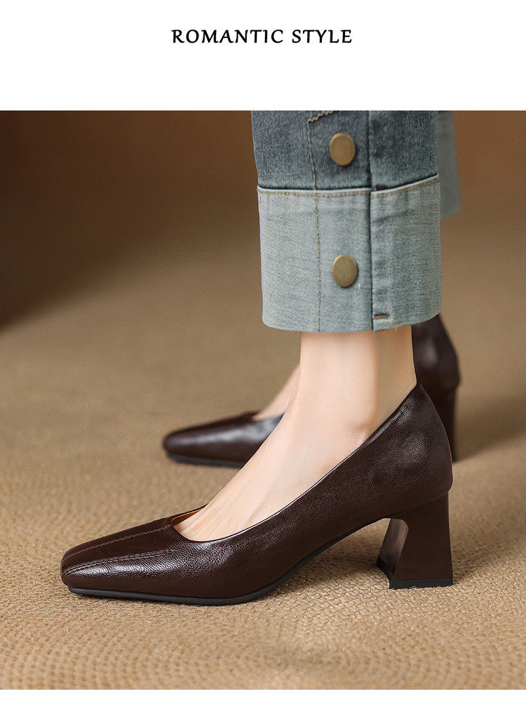 Французские средние каблуки коричневые маленькие кожаные туфли.
