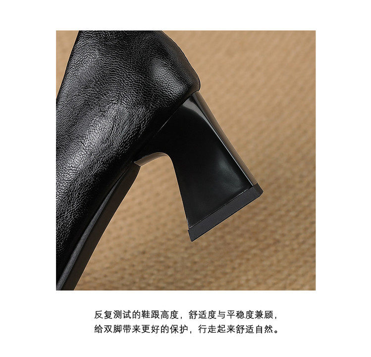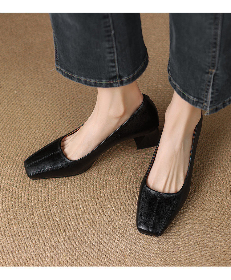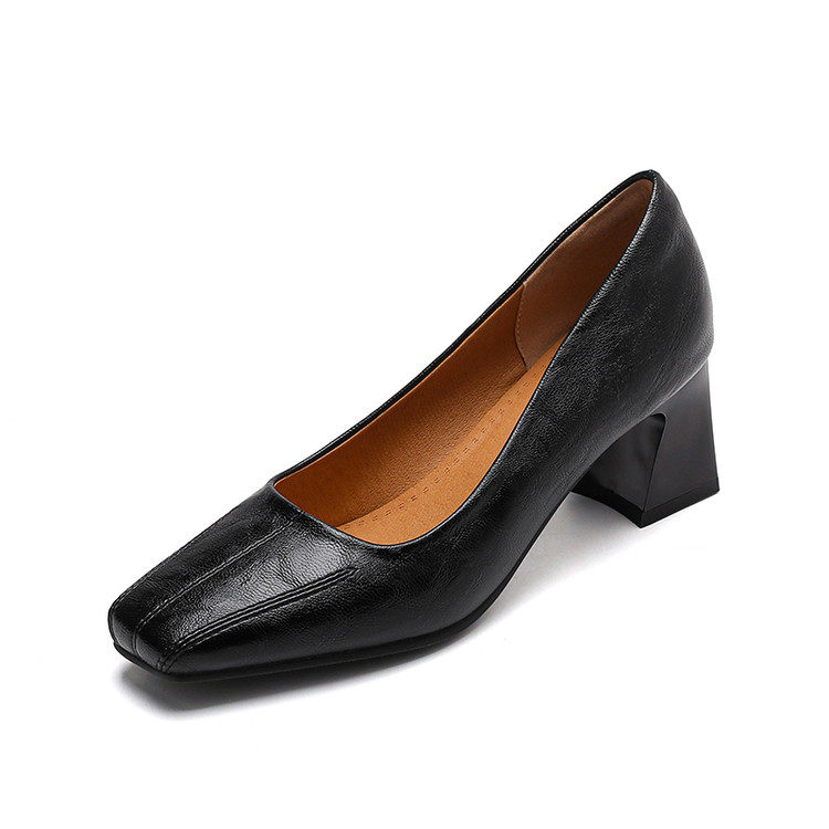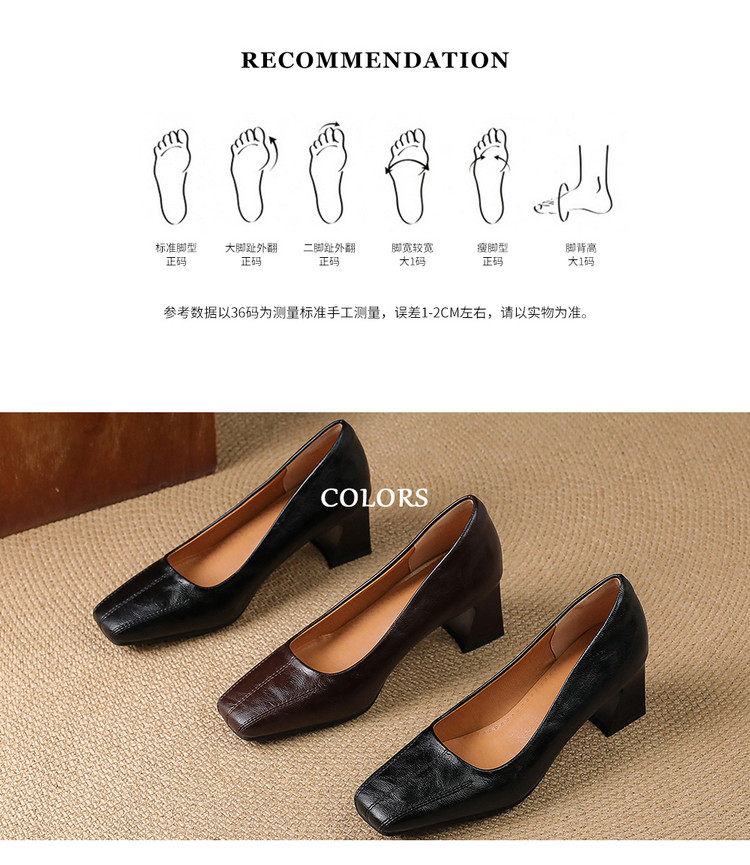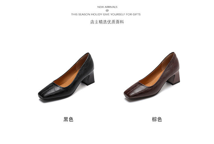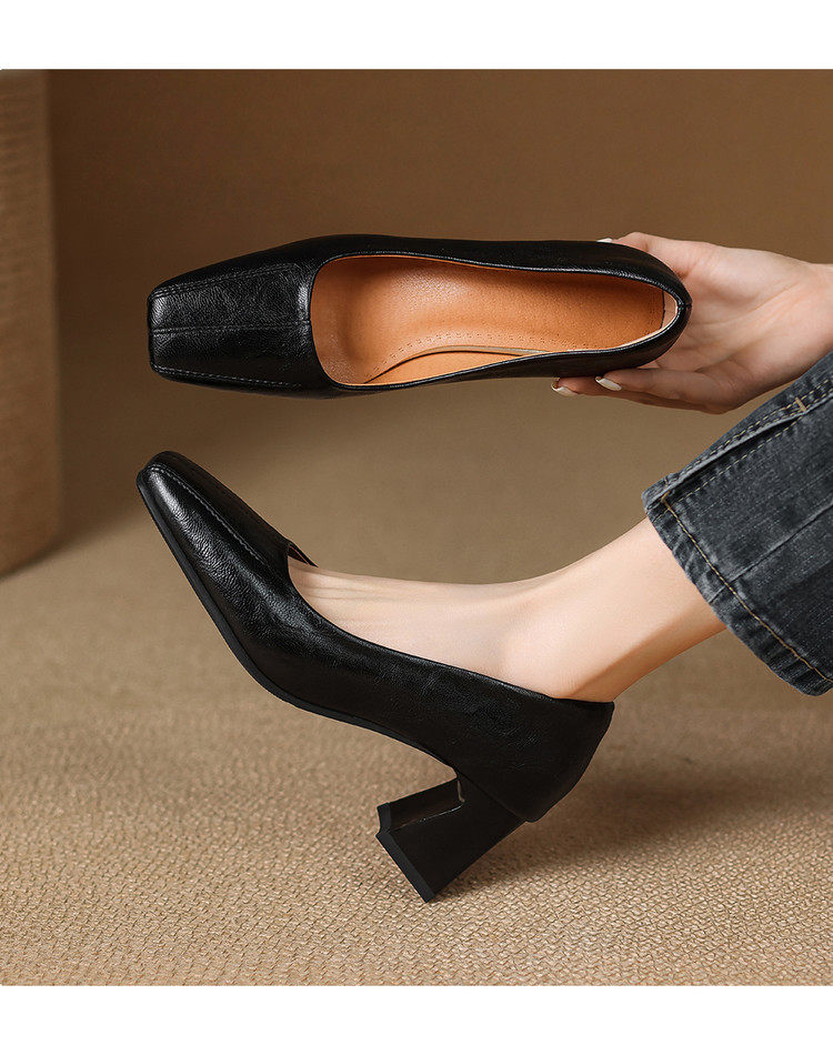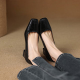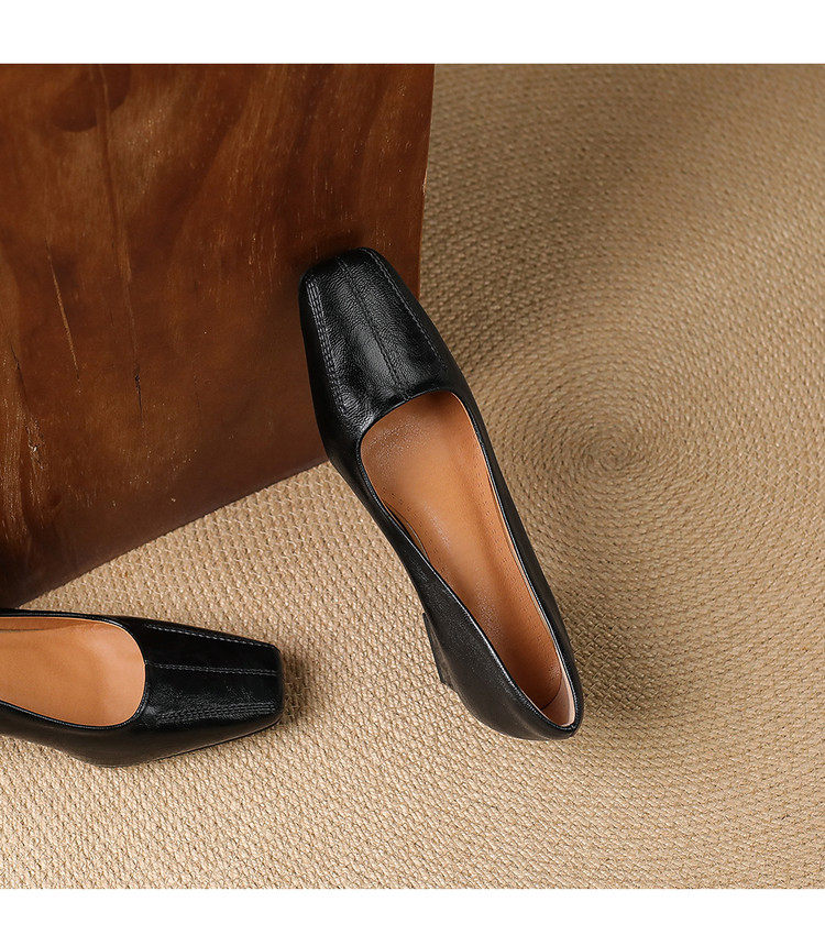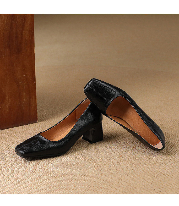 Французские средние каблуки коричневые маленькие кожаные туфли.
