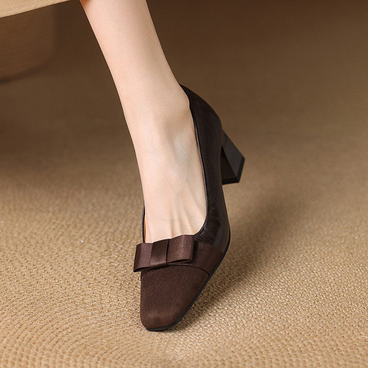 Сладкий лук квадратный ног высокого каблука Большой размер 44 45 46 47 48 размер толстые каблуки для одиночной буш