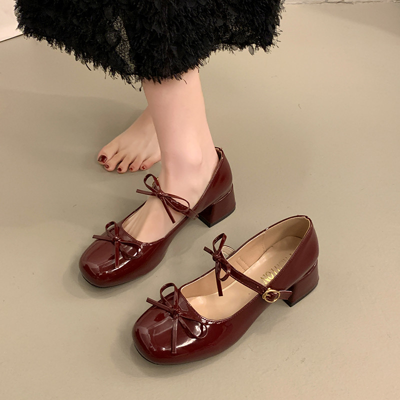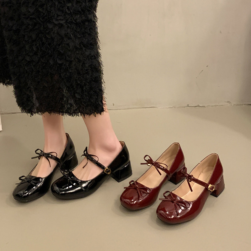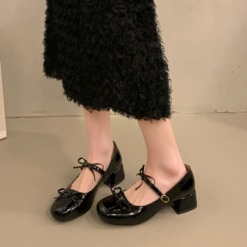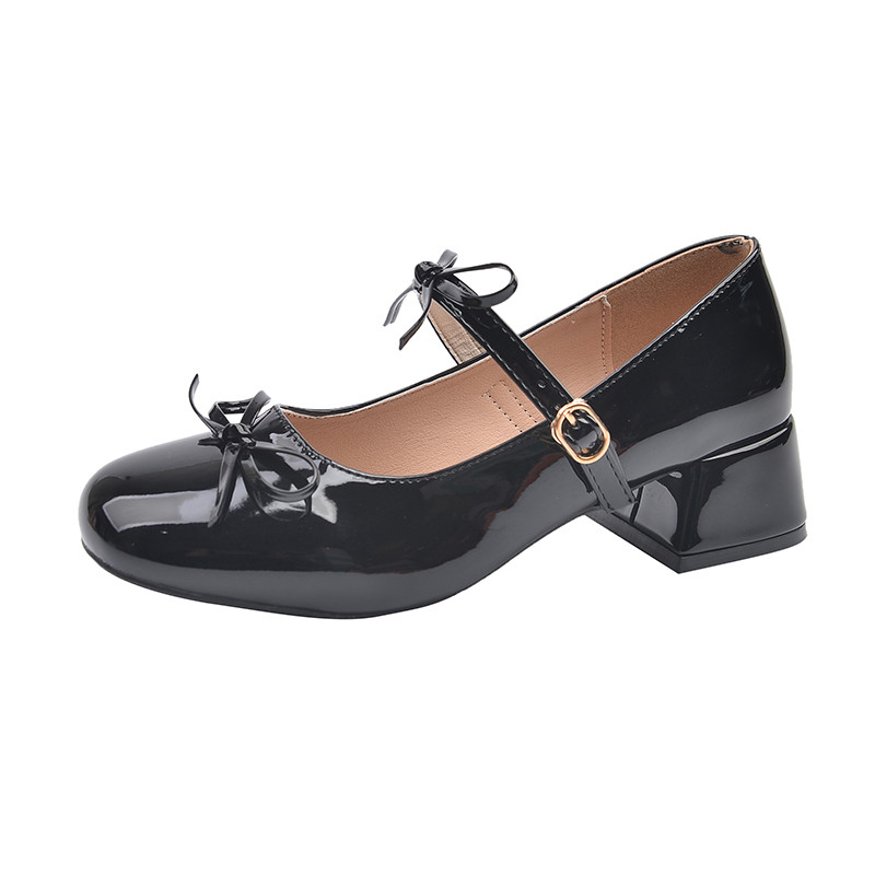 Весенняя обувь, высокая универсальная подходит с юбкой с бантиком для кожаной обуви, туфли, французский стиль