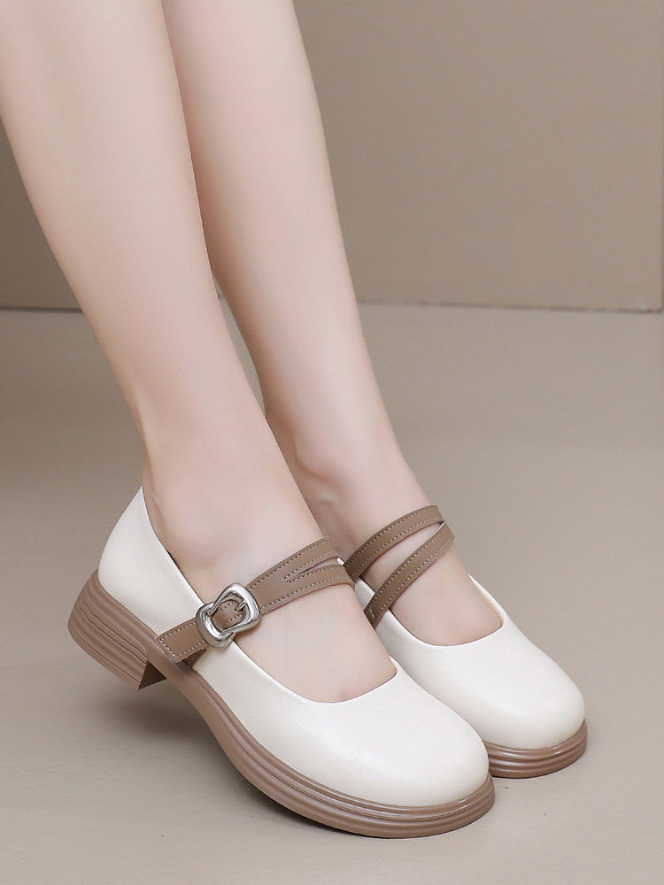 Женские летние туфли Мэри Джейн из натуральной кожи на толстом каблуке, женская обувь на мягкой подошве, большие размеры, кожаные туфли с одним ремешком, с круглым носком, на широкой толстой ноге