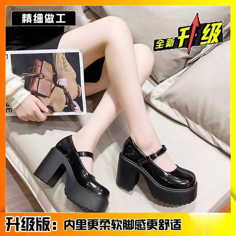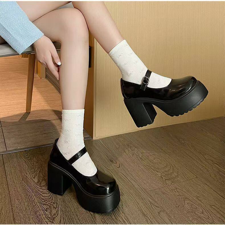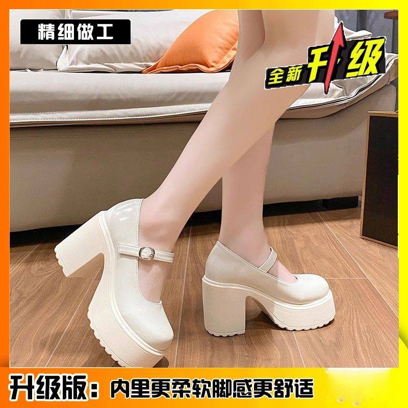31-46 Очень большие белые туфли на высоком каблуке, новинка 2025 года, весенне-осенние туфли на очень высокой толстой подошве, 8 см, французские туфли Мэри Джейн, 42