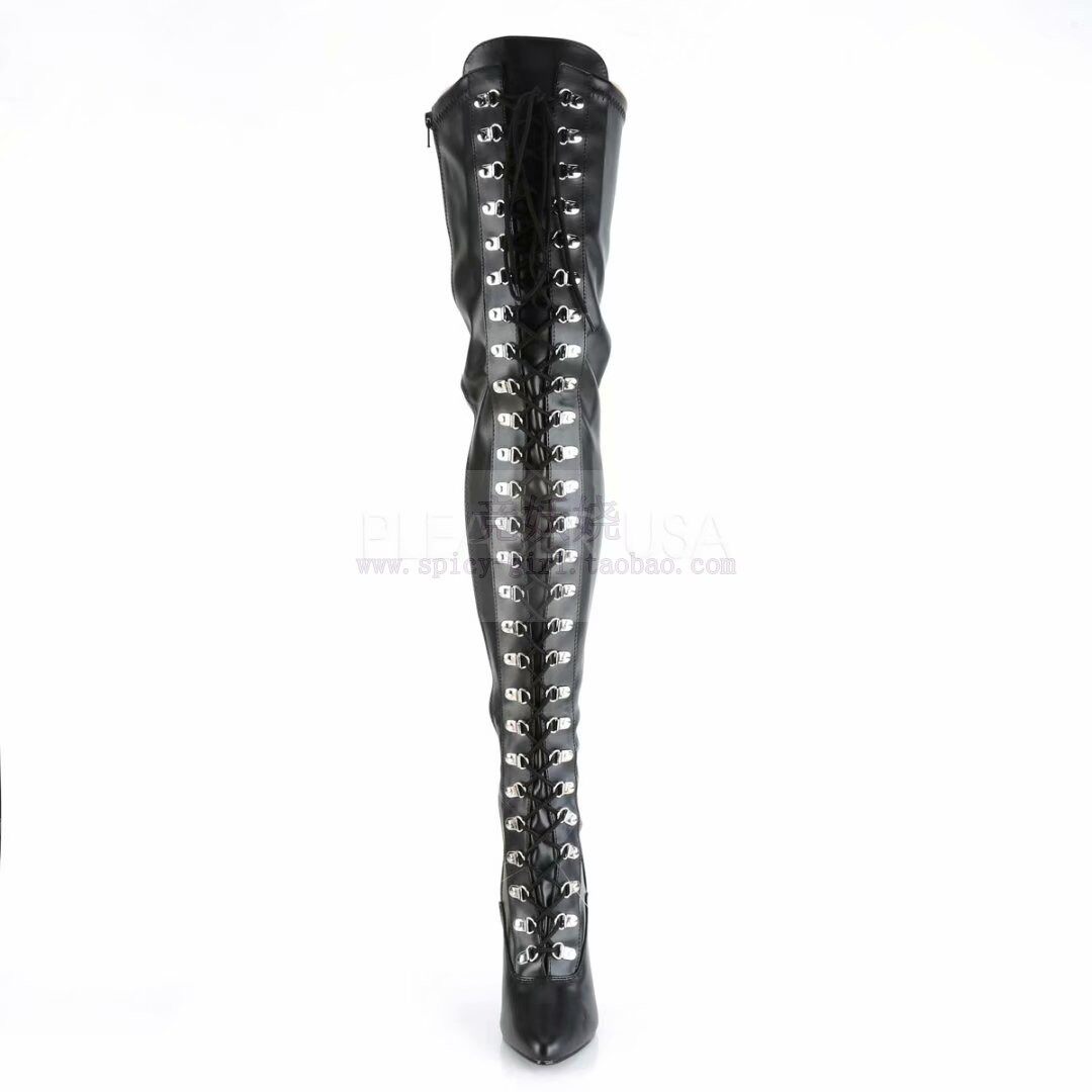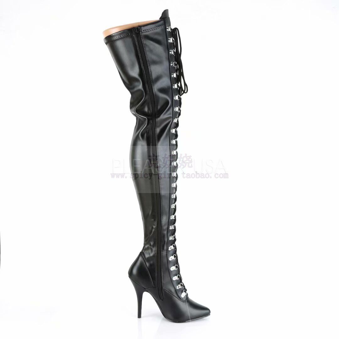 Демисезонные черные высокие сапоги на высоком каблуке, ремень, США, 12.7см