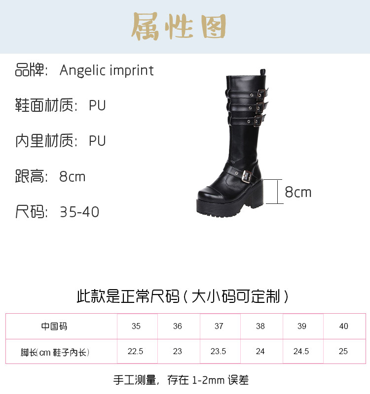 Angelic imprint Демисезонный ремень, пряжка, высокие сапоги, стиль Лолита, в стиле панк