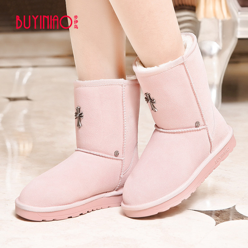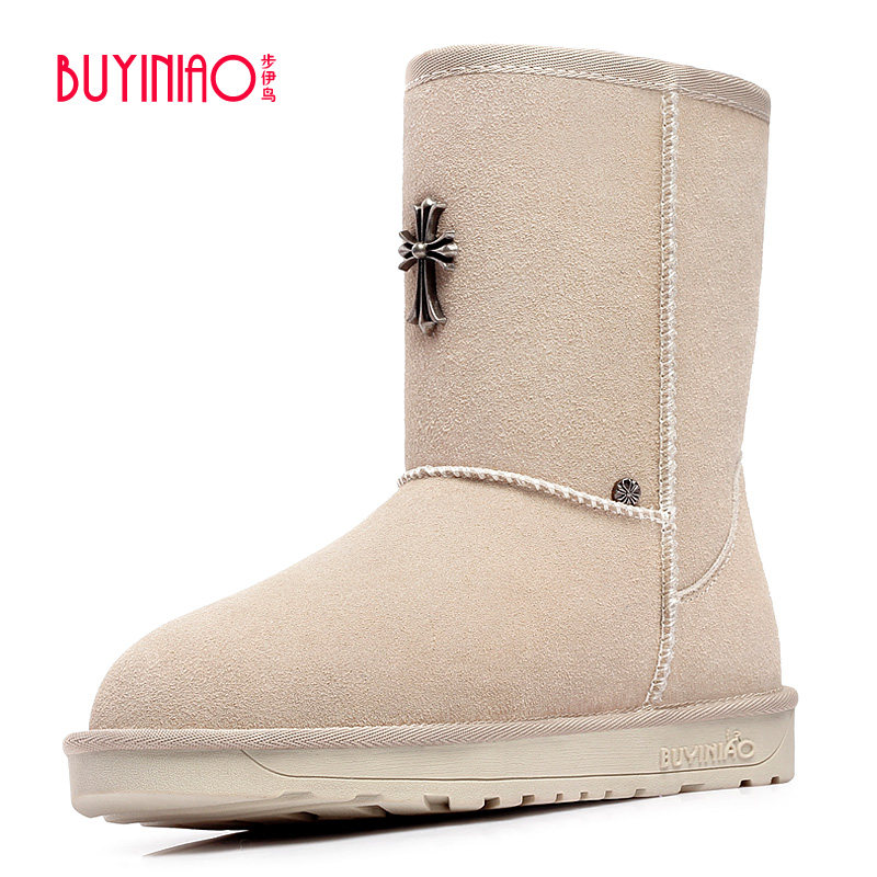 步伊鸟 2018 осенне-зимние новые модные женские зимние ботинки, двухслойные бархатные женские хлопковые туфли до середины икры из воловьей кожи