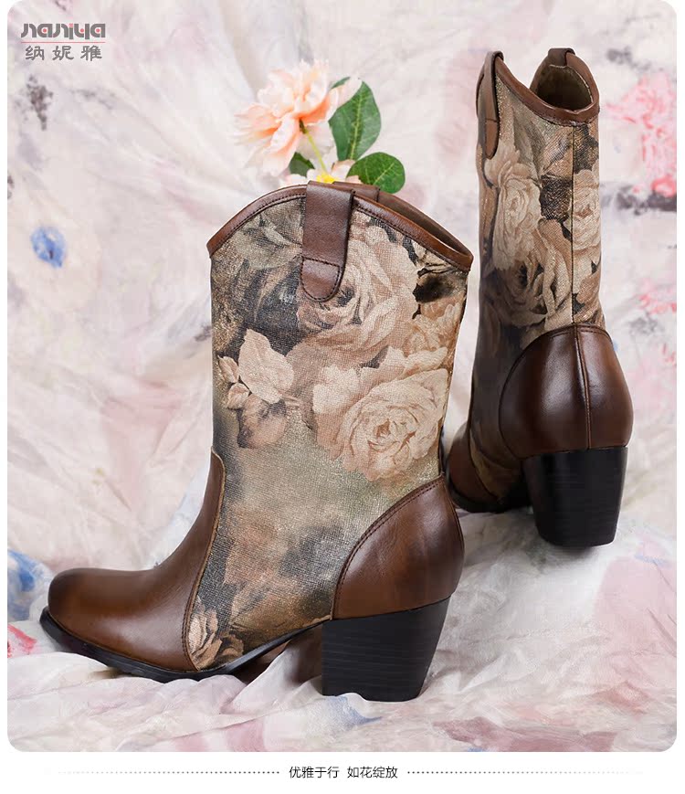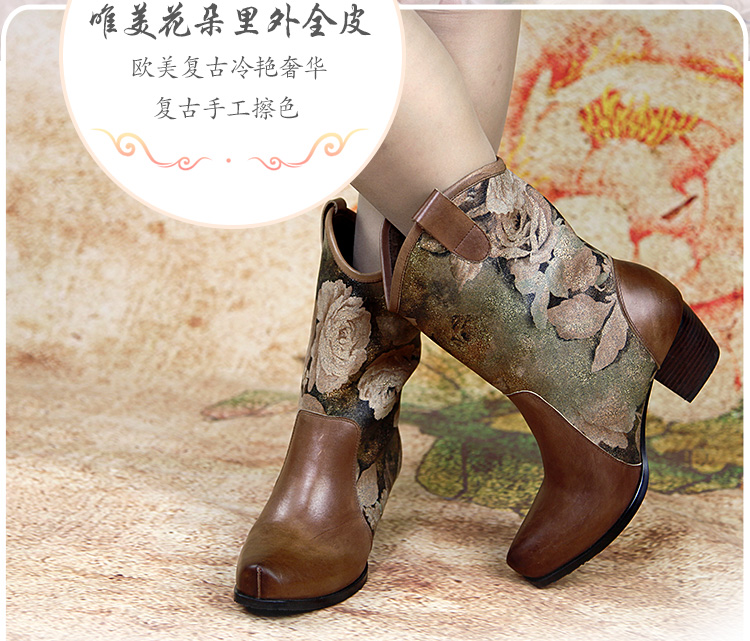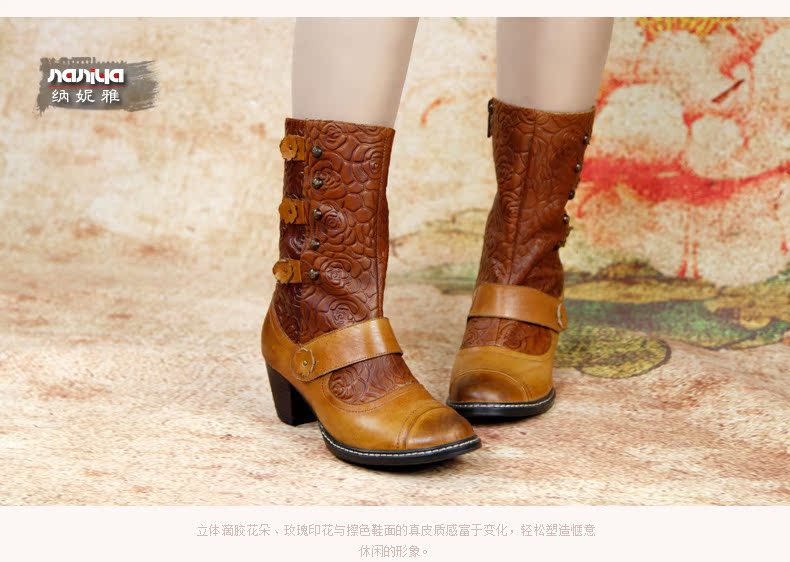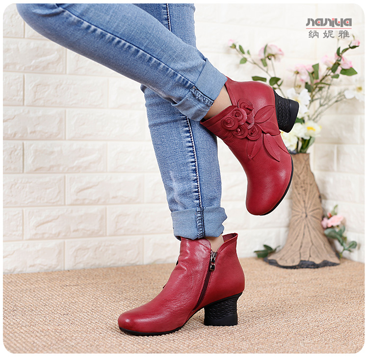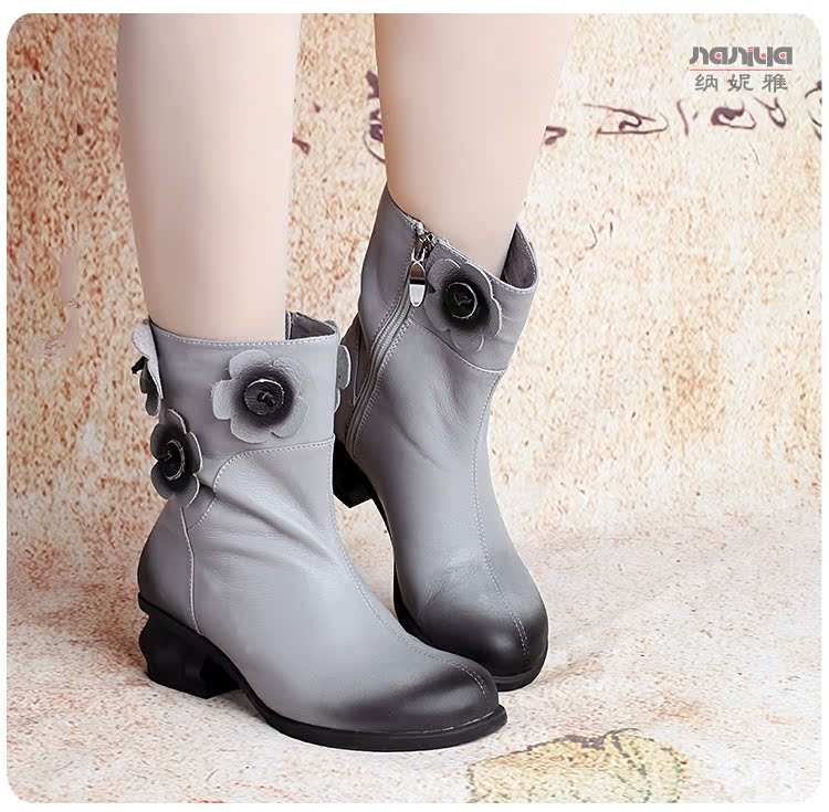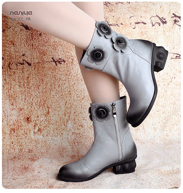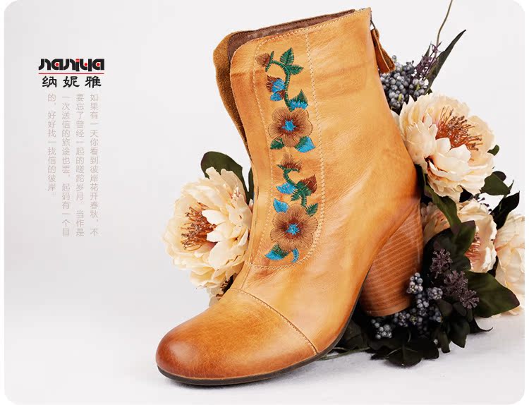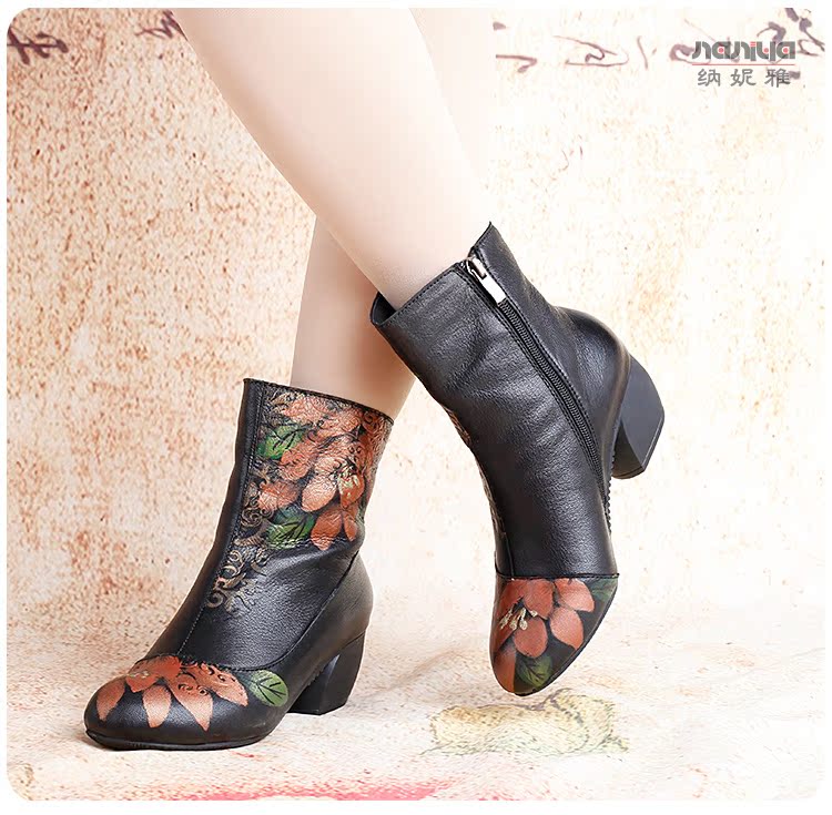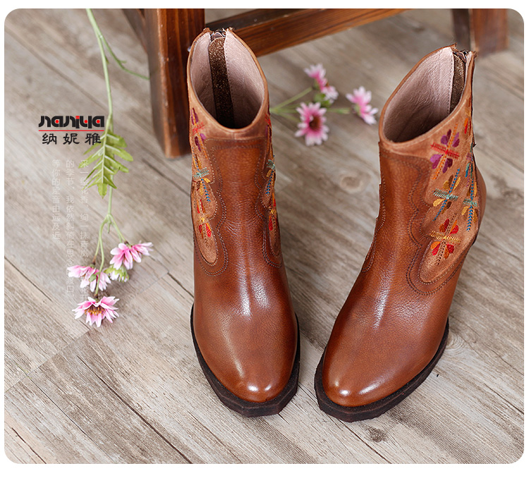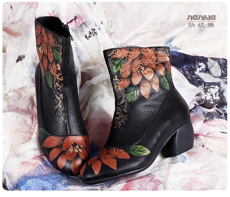 Нейни литературные короткие ботинки ручной работы кожаные женские женские туфли повседневная высокая каблука ретро прилив