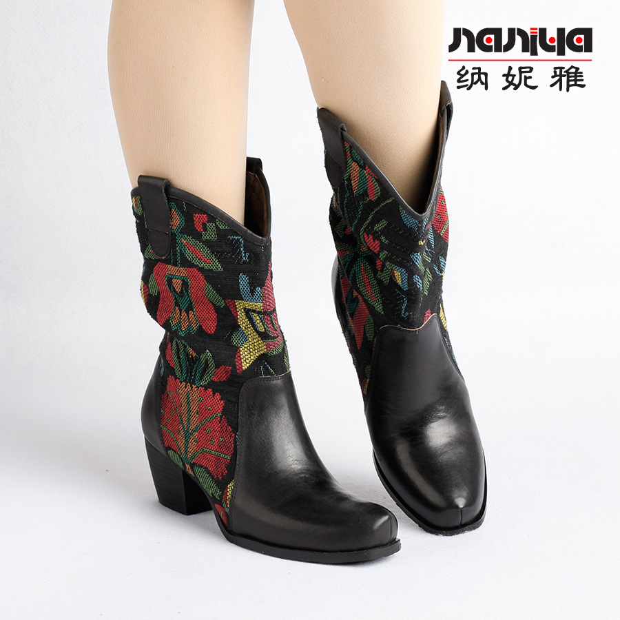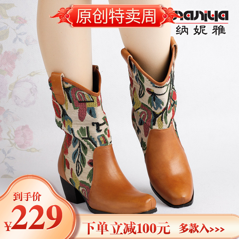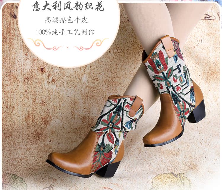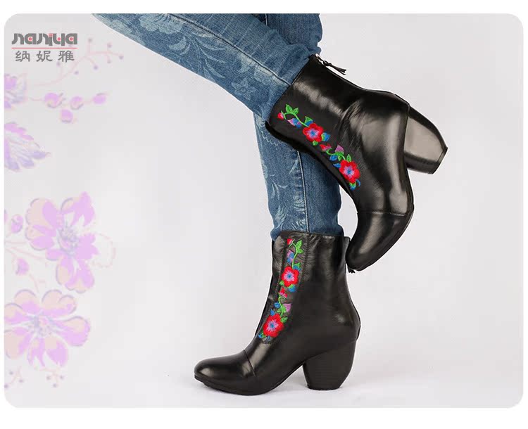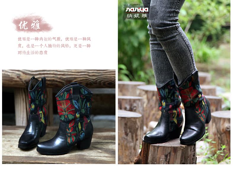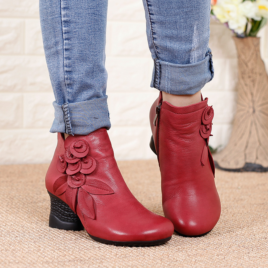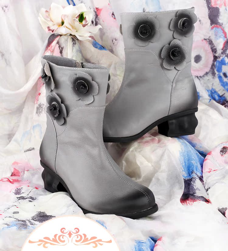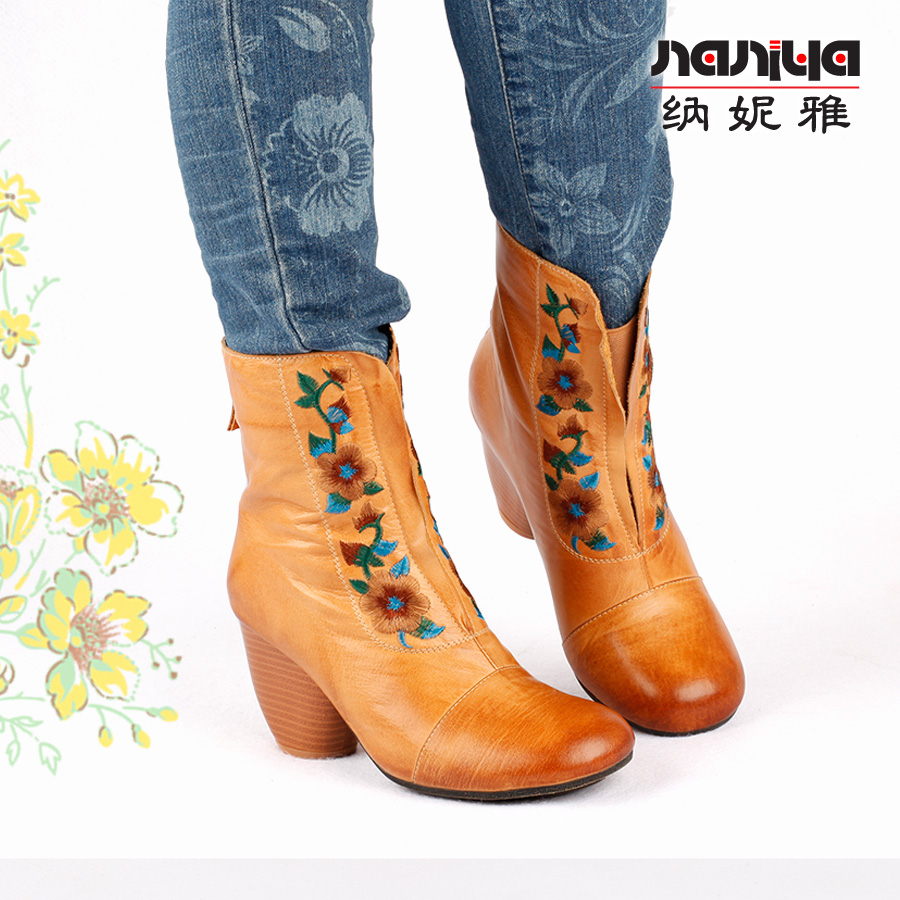 Нейни литературные короткие ботинки ручной работы кожаные женские женские туфли повседневная высокая каблука ретро прилив