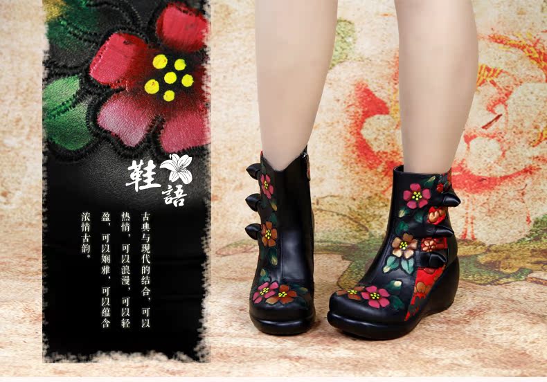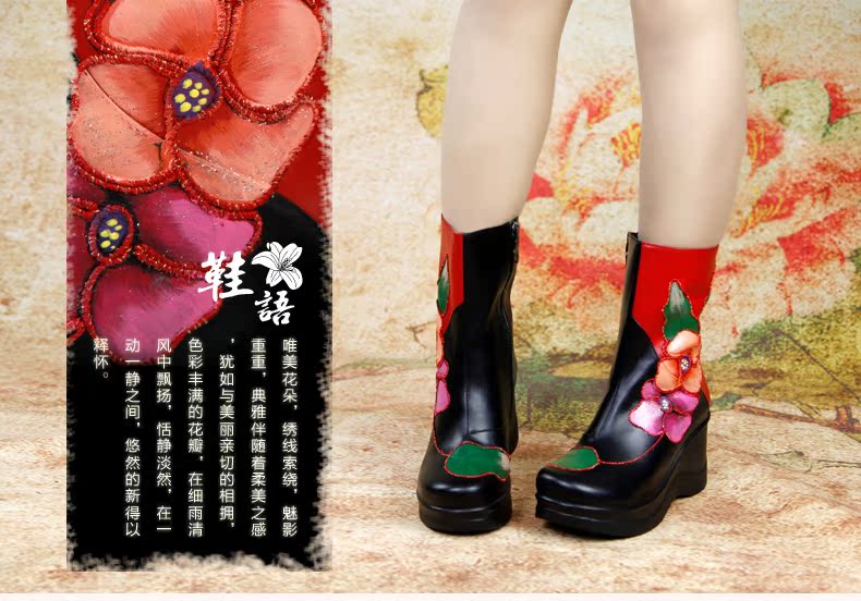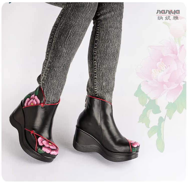 Оригинальные туфли, этническое универсальное ханьфу, короткие сапоги, китайский стиль, в цветочек