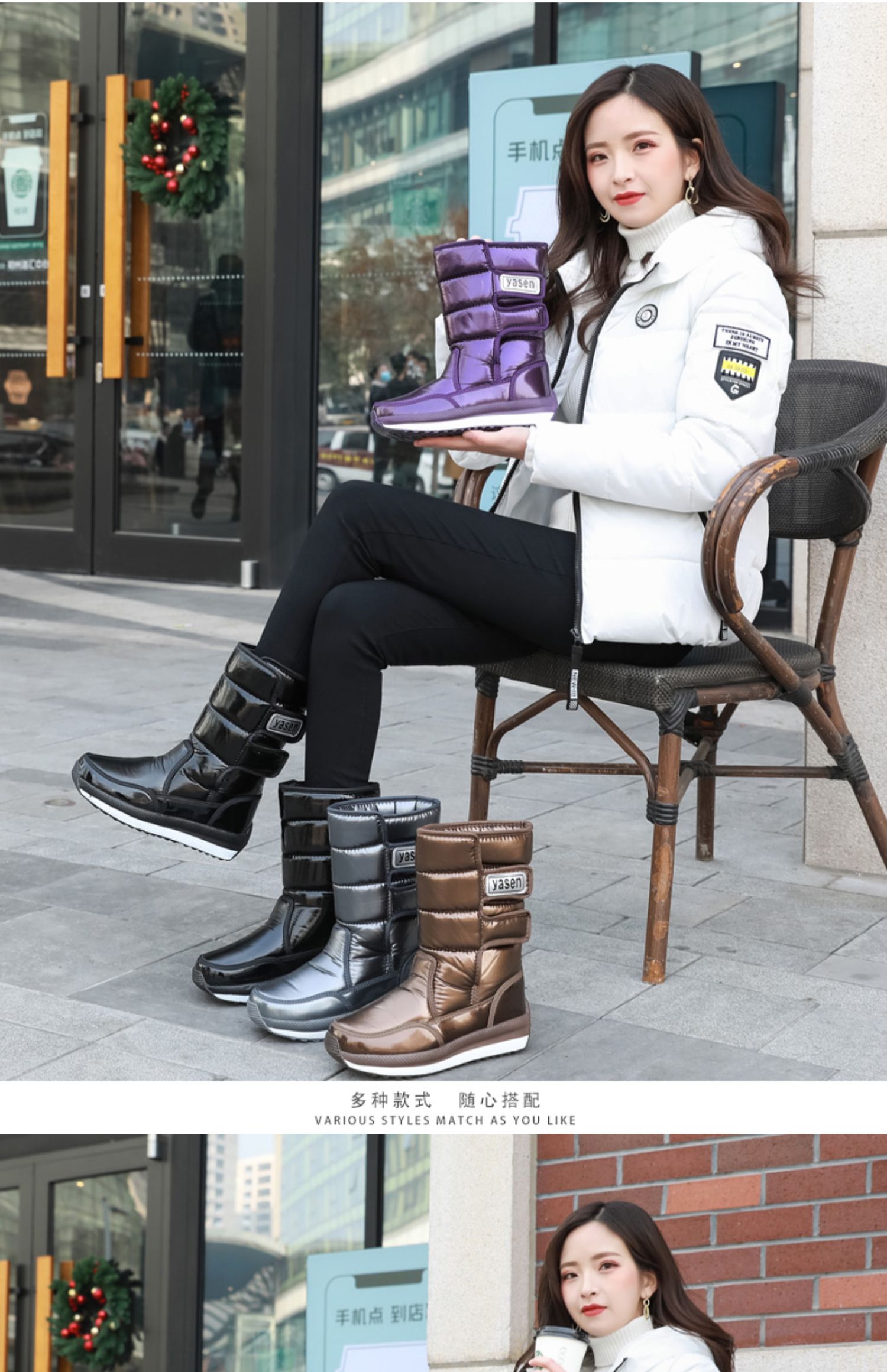 Нескользящие флисовые зимние модные туфли, высокие сапоги, ботинки, коллекция 2023, средней длины
