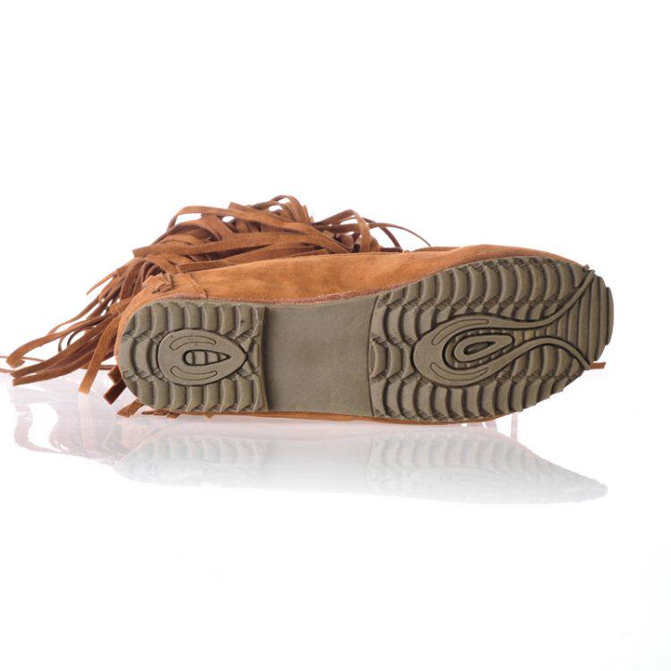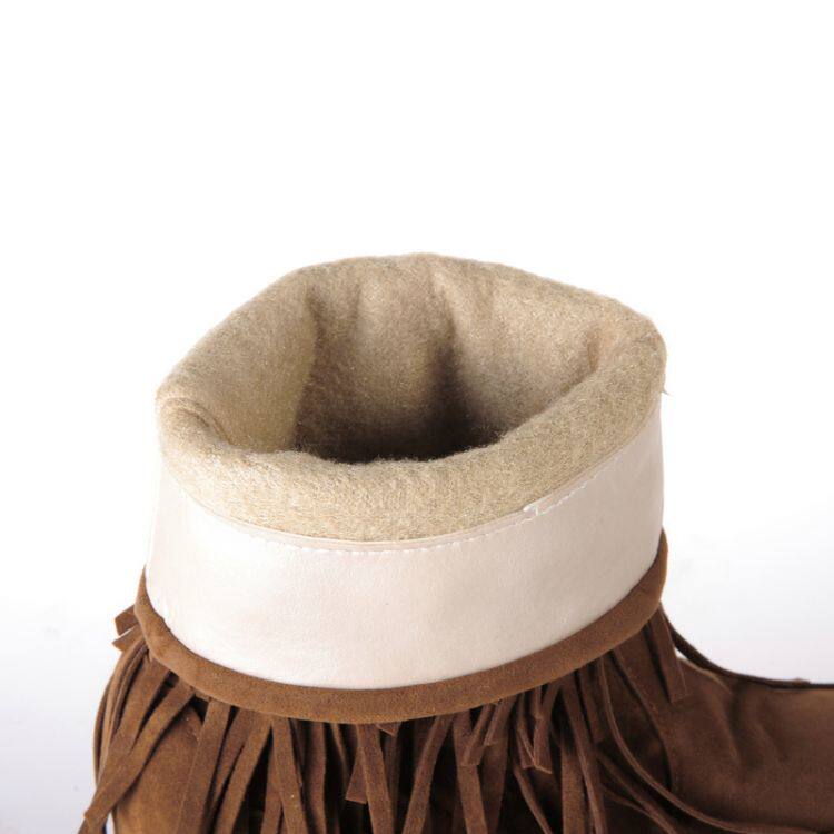 Зимние хлопковые сапоги, сапоги до середины икры, заклепки, кисточки, зимние сапоги в этническом стиле, низкие каблуки увеличенной высоты, красные женские сапоги большого размера с круглым носком.