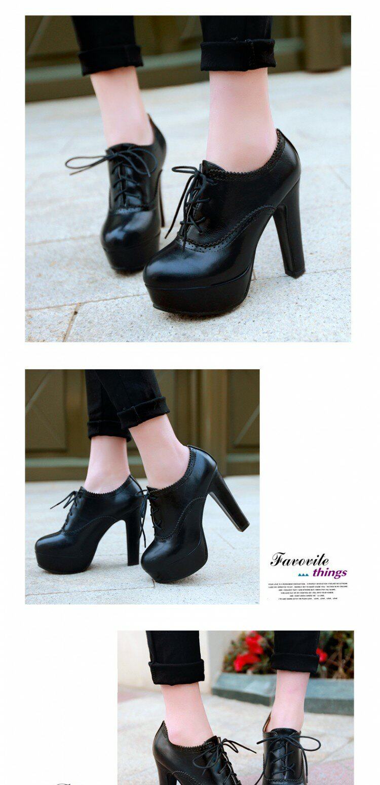 Весенняя новая водонепроницаемая платформа 2015 года, обувь с высокой высокой платформой, круглая весенняя и осенняя одиночная обувь, женская обувь, туфли Black Spring