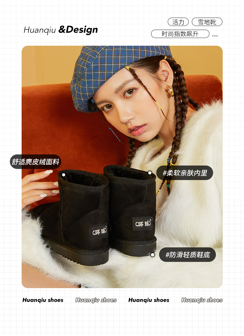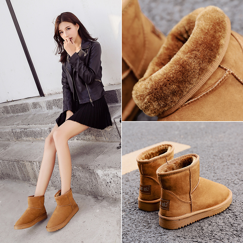 环球 Универсальные флисовые удерживающие тепло зимние туфли для отдыха в английском стиле, трендовые короткие сапоги для влюбленных