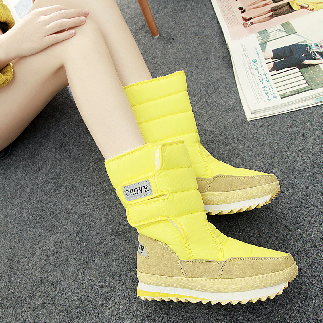 Зимние нескользящие сапоги, флисовые удерживающие тепло ботинки, средней длины