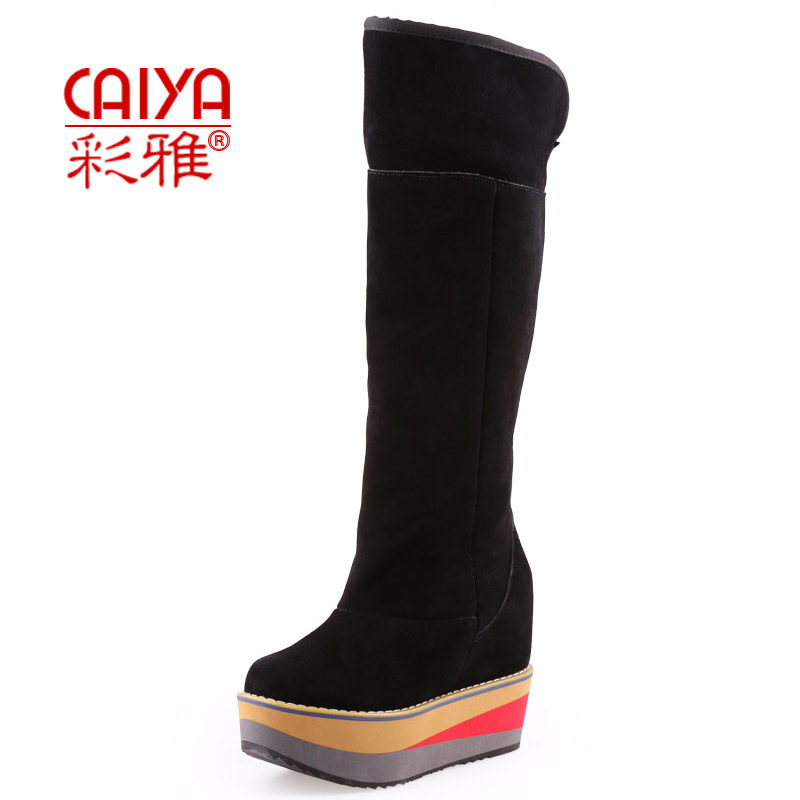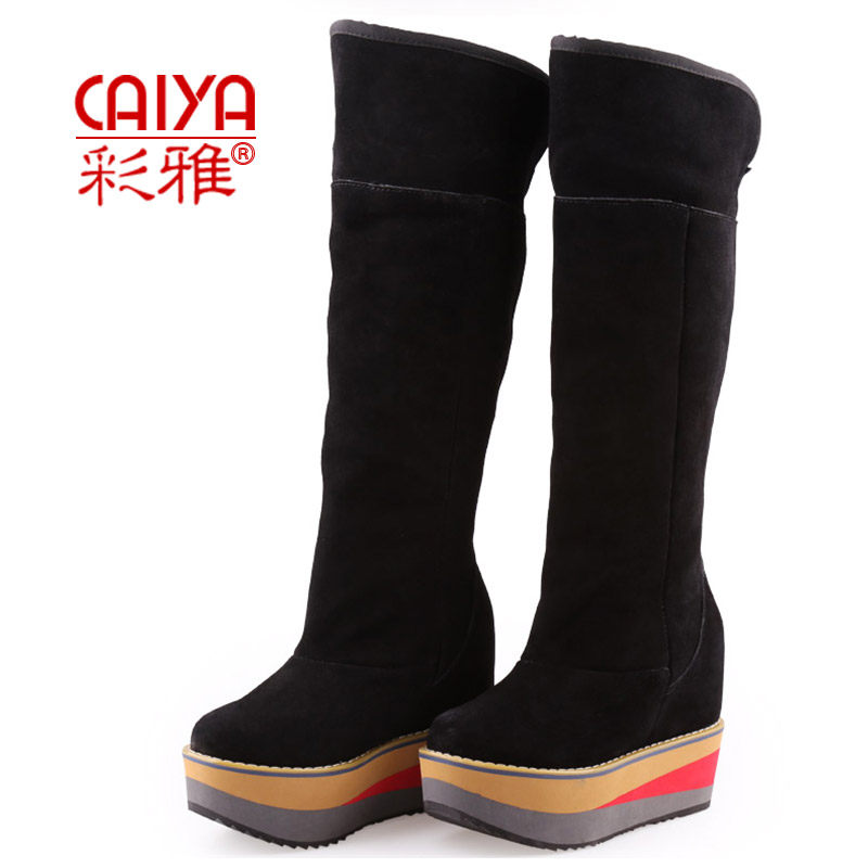 彩雅 Высокие матовые высокие сапоги на платформе, из натуральной кожи