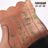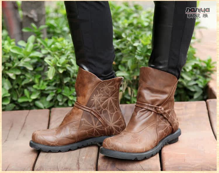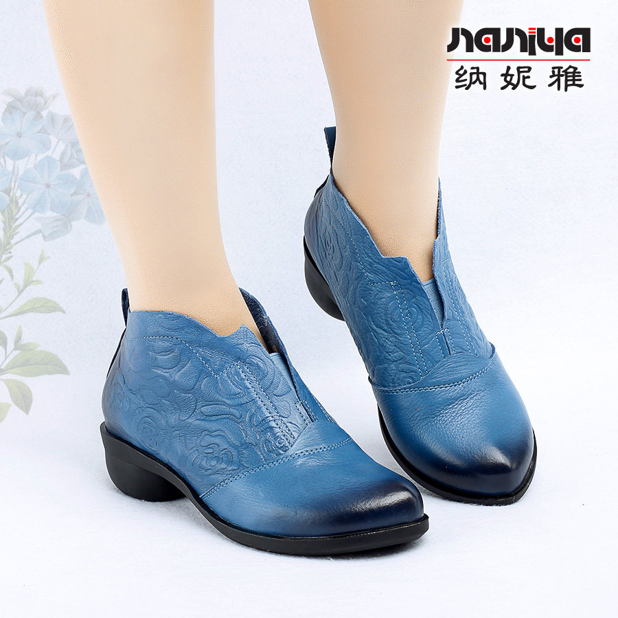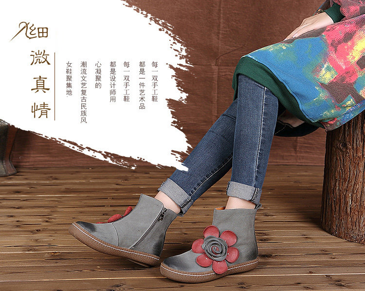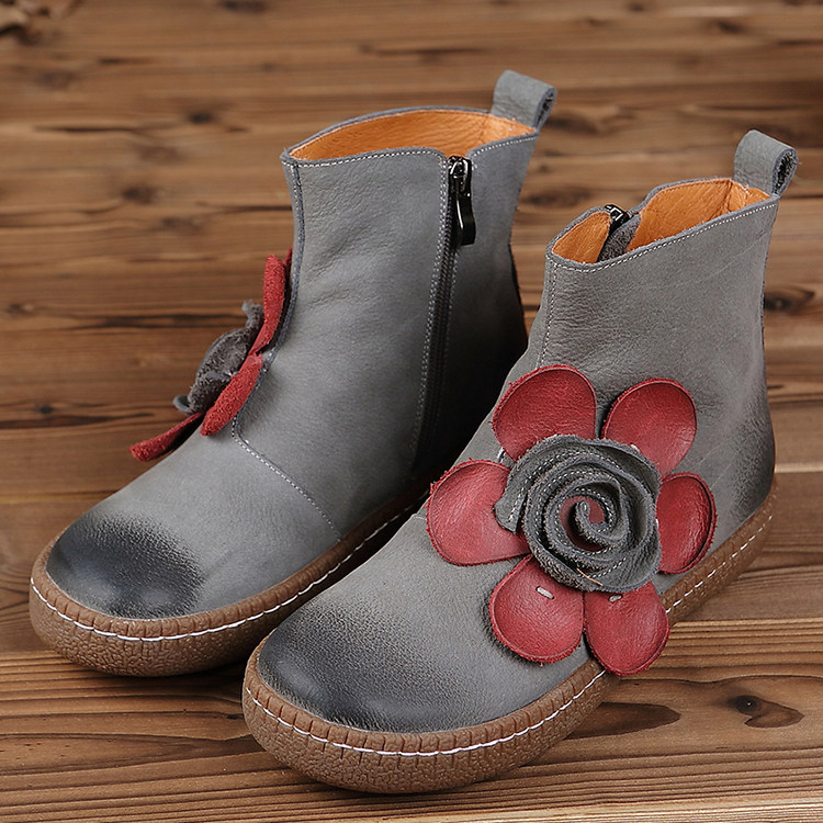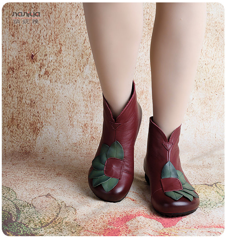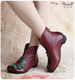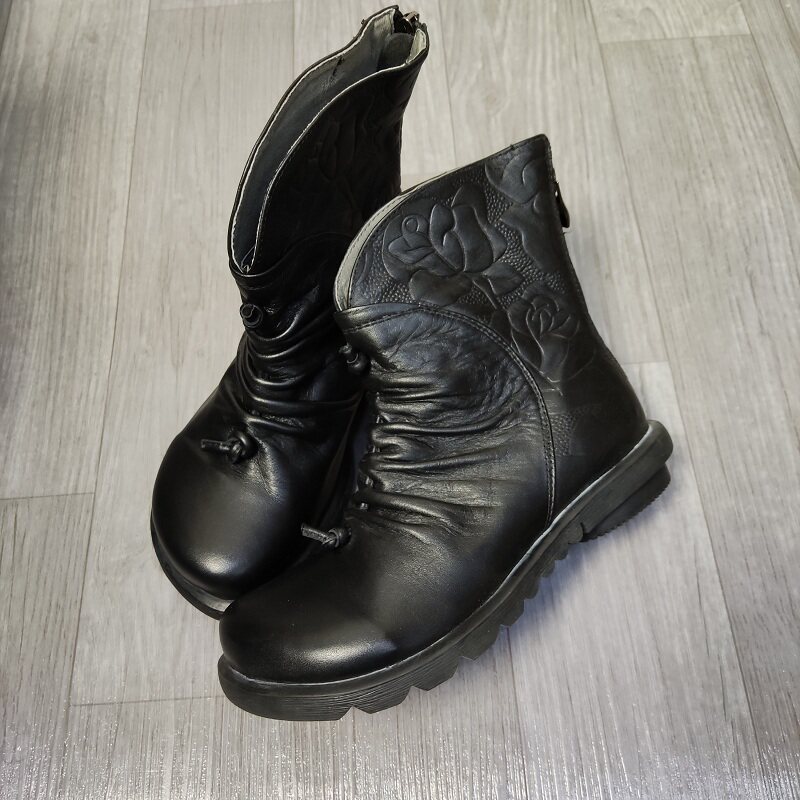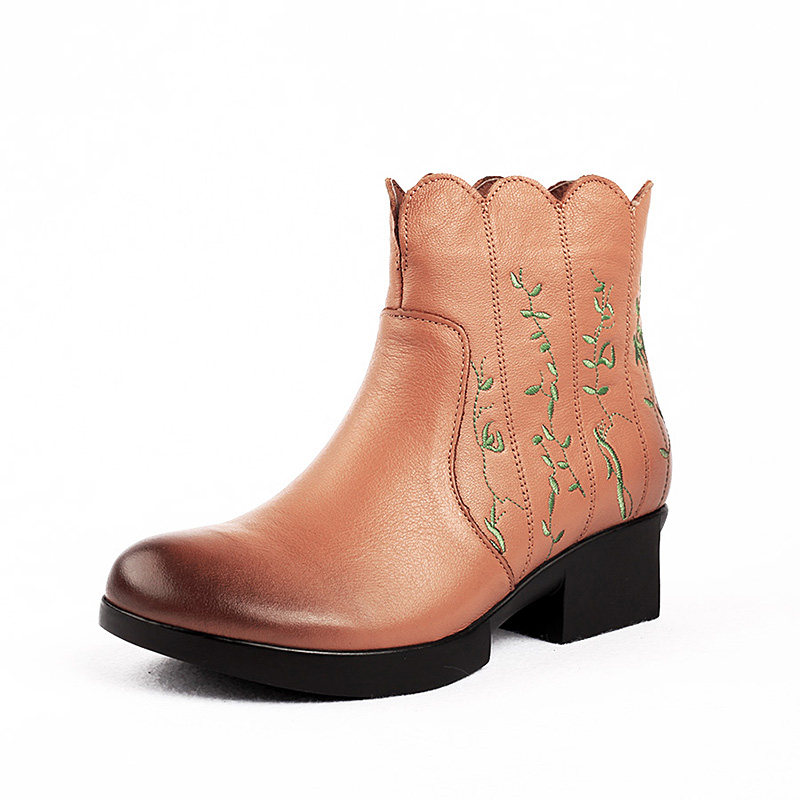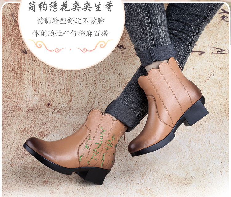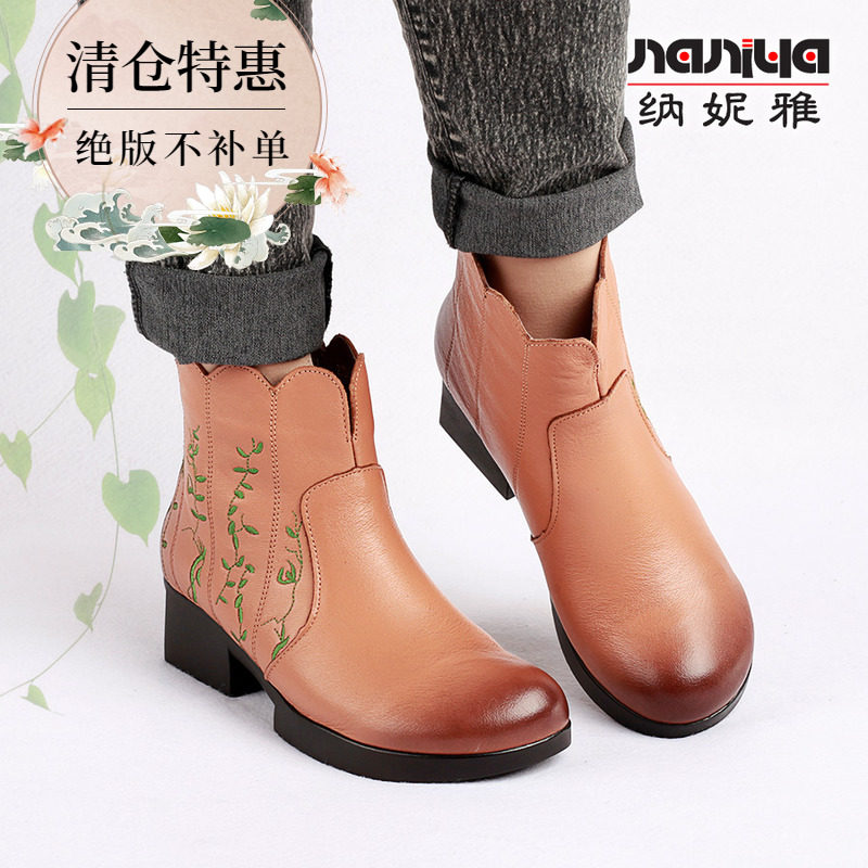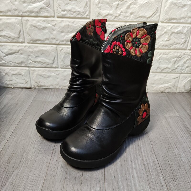 Короткие сапоги для отдыха, комфортные ботинки для матери, в цветочек, из натуральной кожи, для среднего возраста