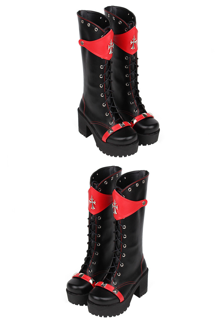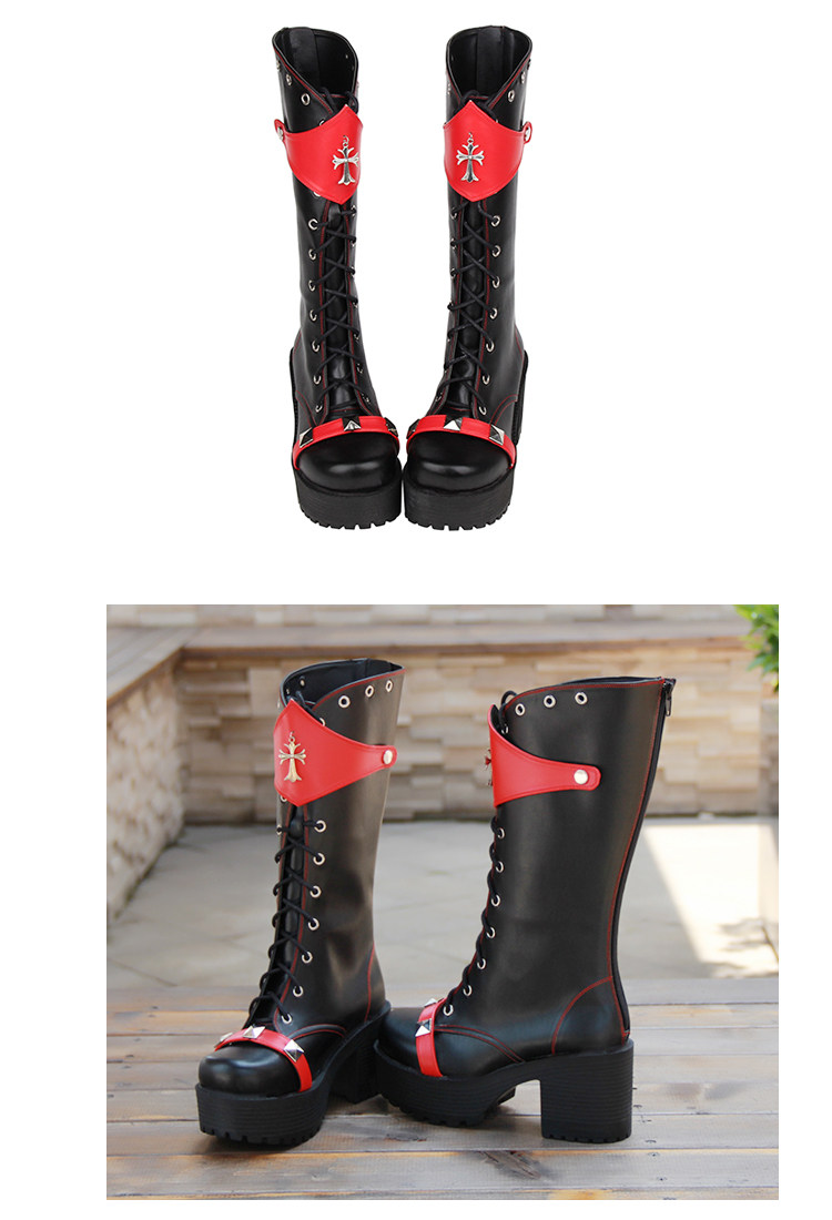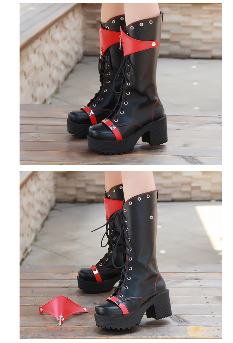 Демисезонные полиуретановые высокие сапоги на платформе, косплей, в стиле панк, стиль Лолита
