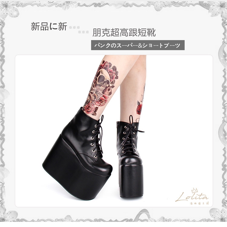 Высокие короткие сапоги на платформе, делается под заказ, 15см, стиль Лолита, в стиле панк
