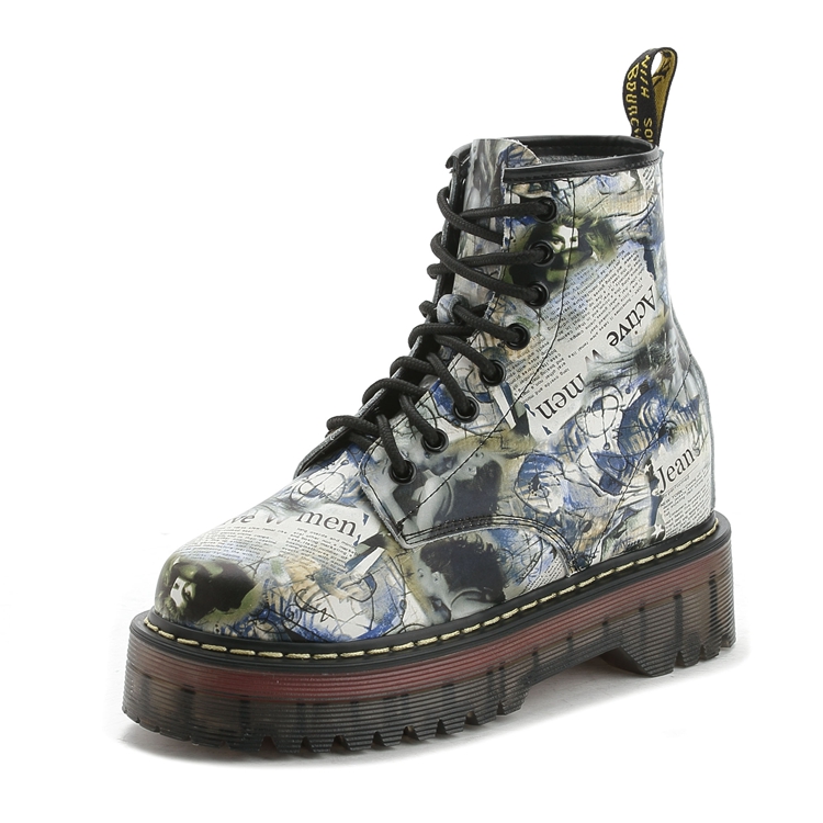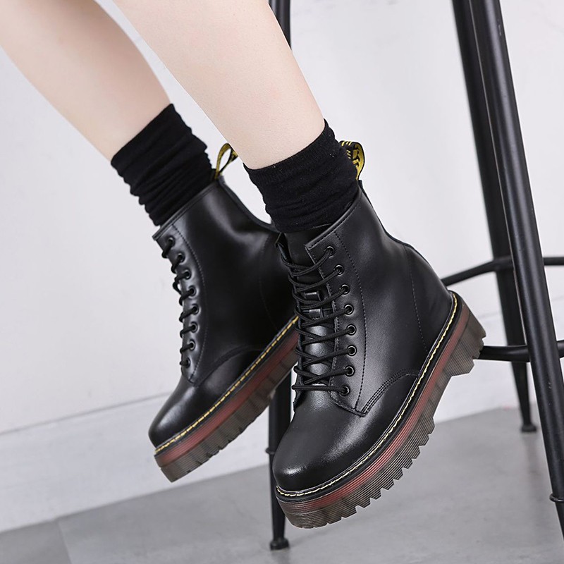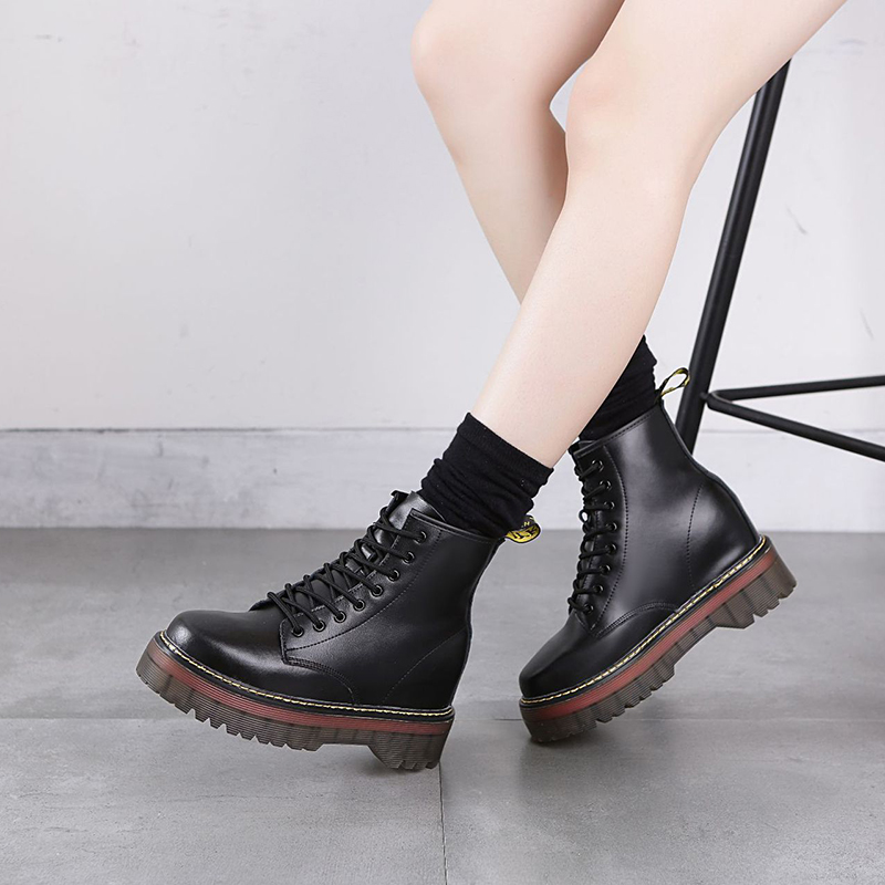 Martens, высокие демисезонные утепленные короткие сапоги на платформе в английском стиле, из натуральной кожи, 8см, в британском стиле