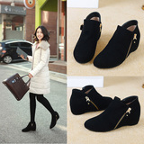 Высокие черные матовые короткие сапоги, из натуральной кожи