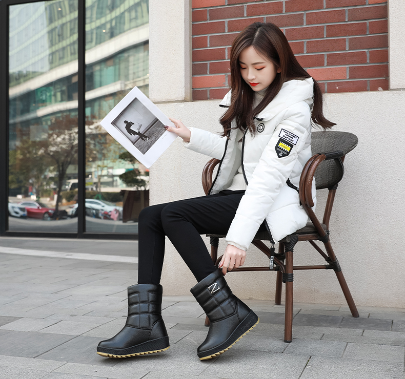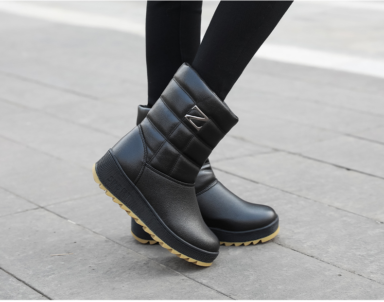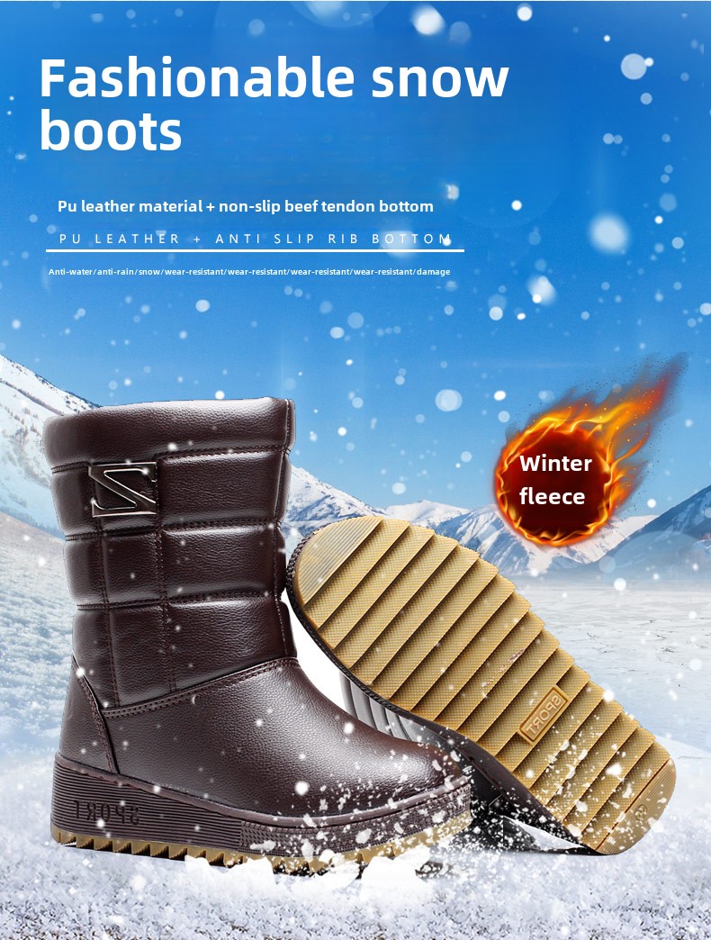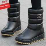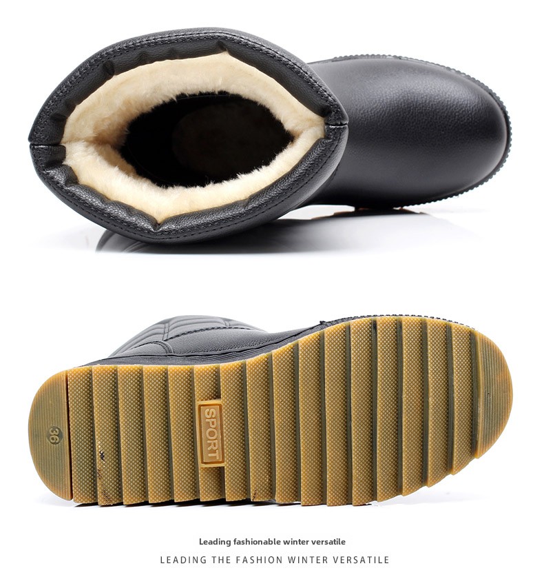 Зимние женские зимние сапоги 2025 года, бархатные утолщенные туфли до середины икры для мам среднего и пожилого возраста, водонепроницаемые и нескользящие высокие ботинки.