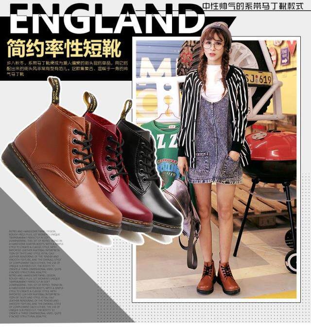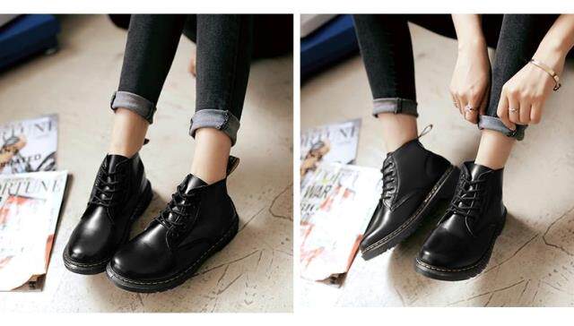 Весна и осень ретро британский стиль Black Martin Boots Short Women Boots Student