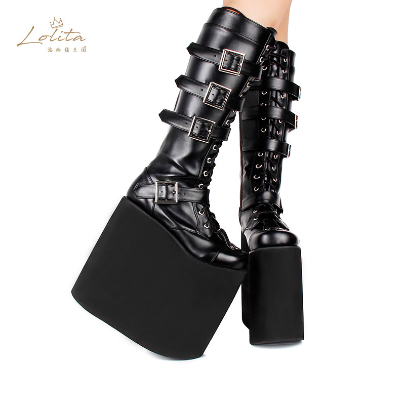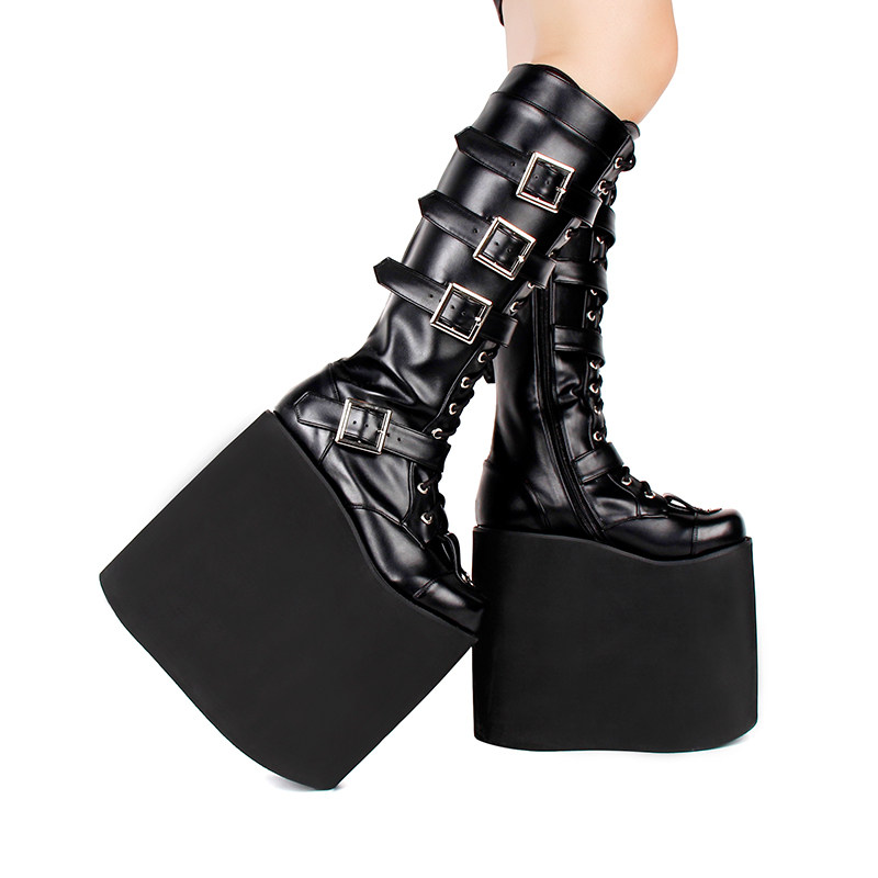 Зимние высокие высокие сапоги на платформе, в стиле панк, 20см