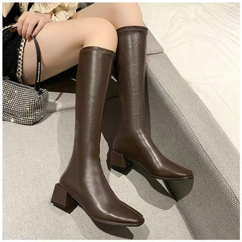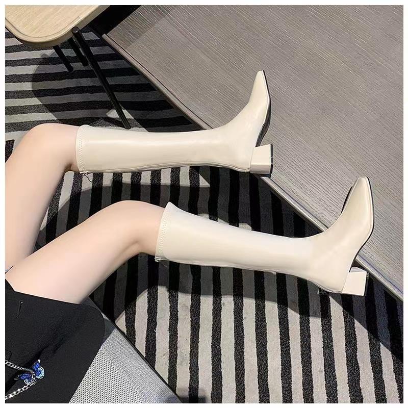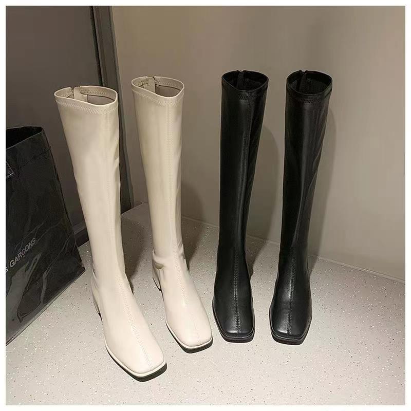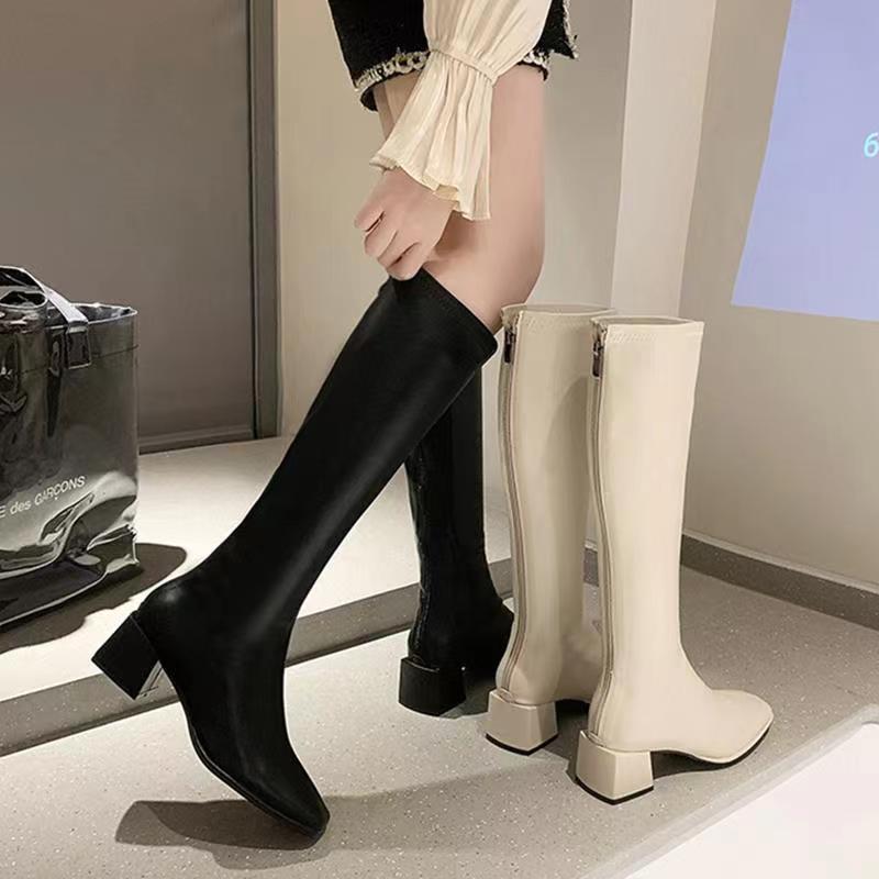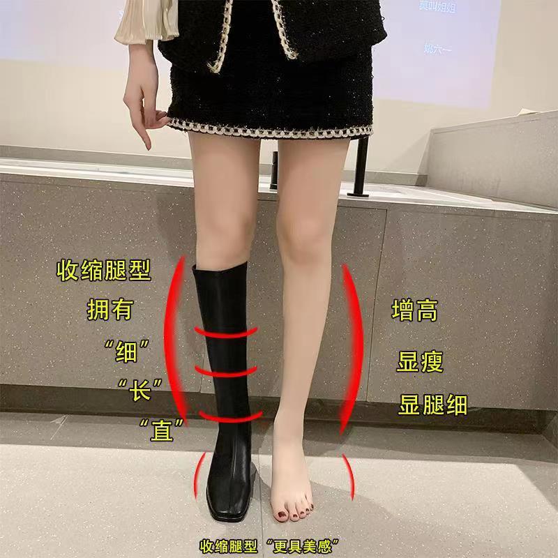 Утепленные сапоги с молнией, черный ростомер, в корейском стиле