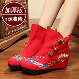 Высокие этнические короткие сапоги на платформе, удерживающие тепло флисовые ботинки, этнический стиль