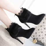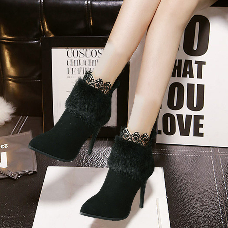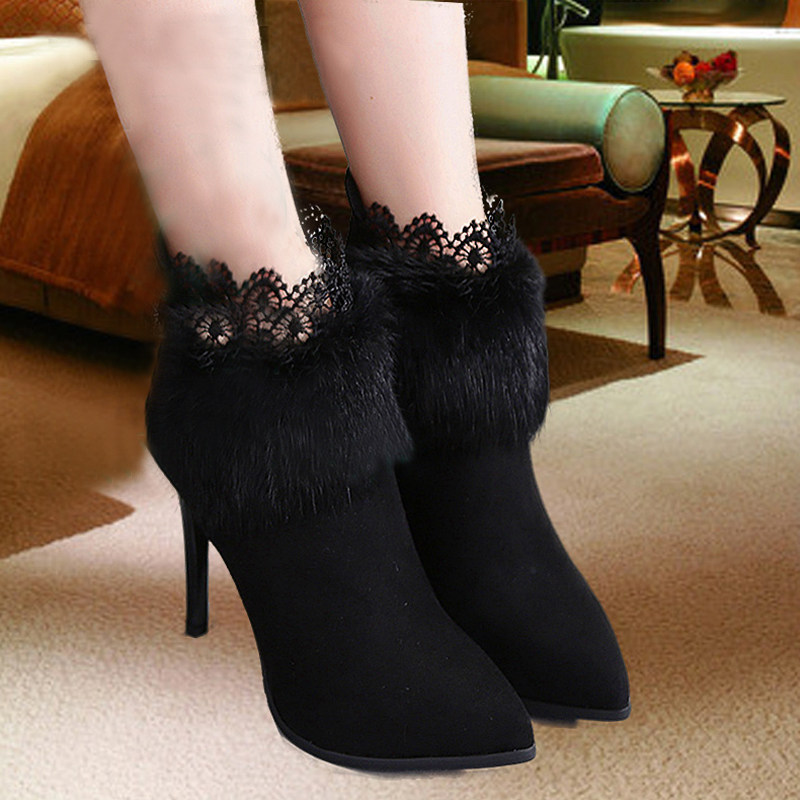 2022 Осень и зима Новая женская обувь кролик, кролики, кружево плюс бархат