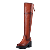 Коричневые высокие сапоги, высокие демисезонные ботинки, из натуральной кожи, большой размер