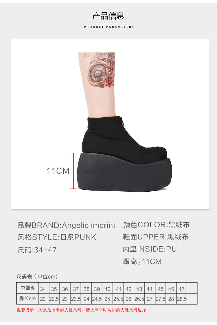 Зимние короткие сапоги с молнией на платформе, стиль Лолита