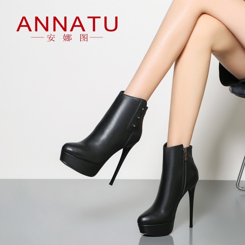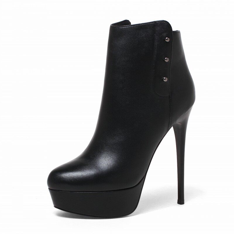 Кожаные ботинки на высоком каблуке, короткие сапоги, из натуральной кожи, воловья кожа, европейский стиль