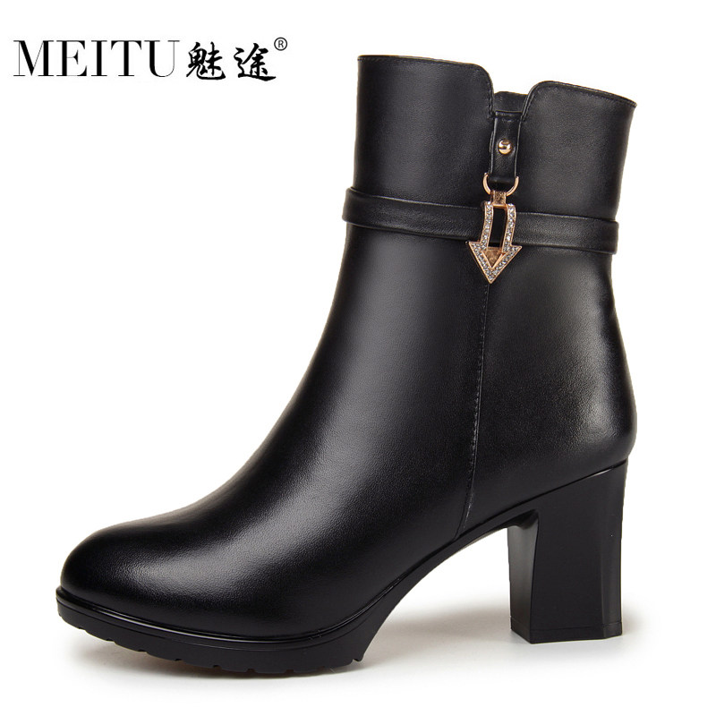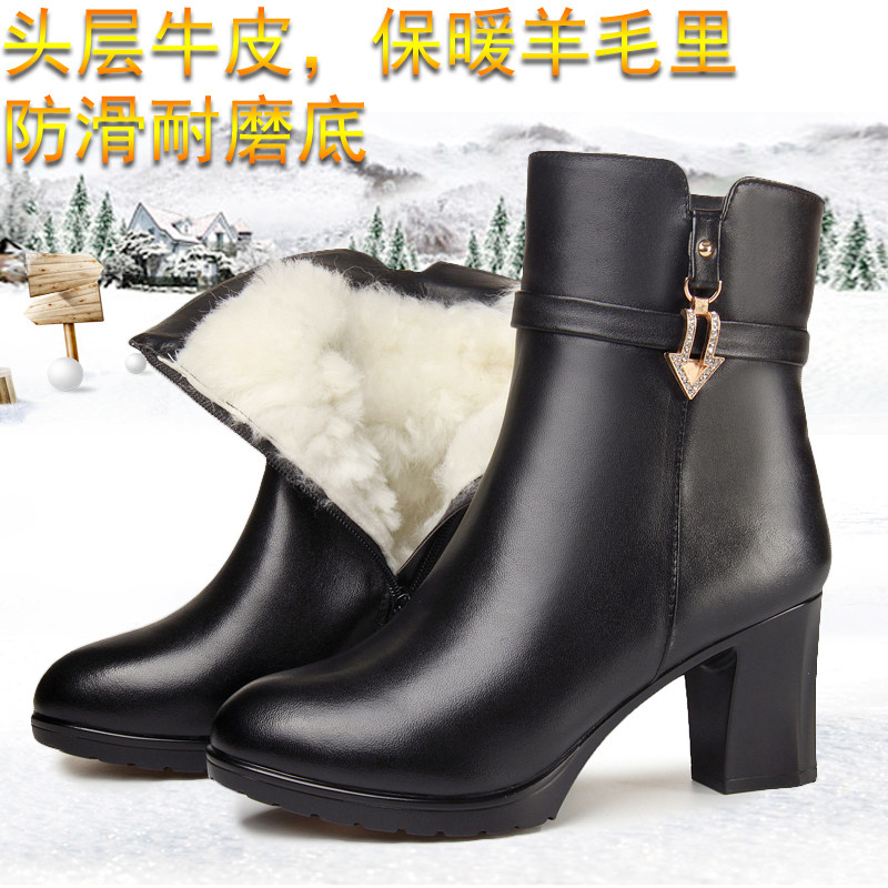 Удерживающие тепло высокие ботинки, короткие сапоги, коллекция 2021, из натуральной кожи