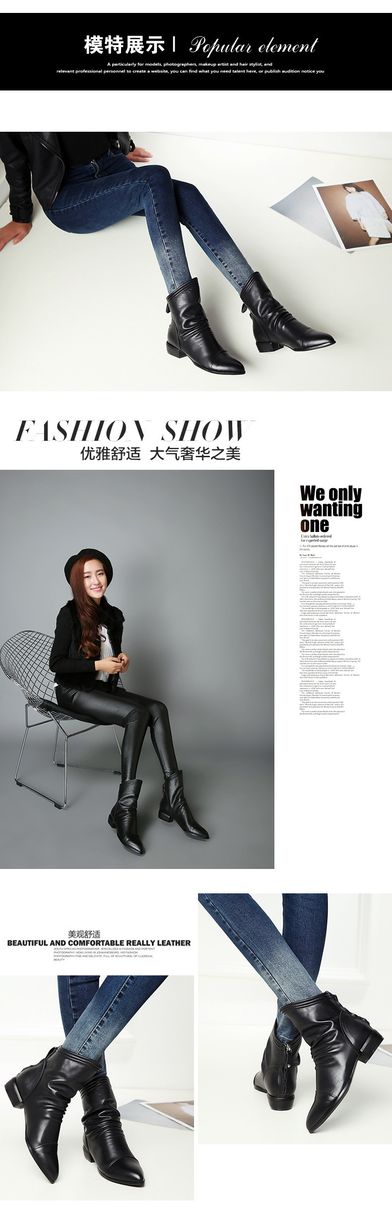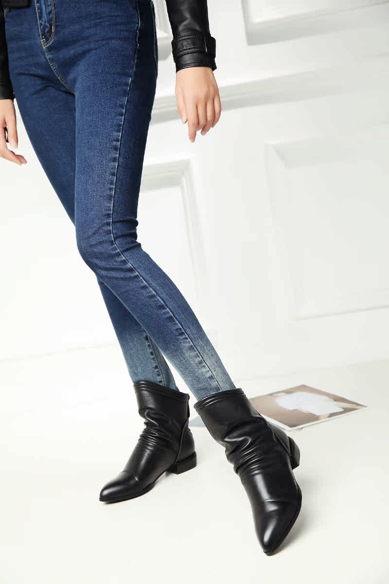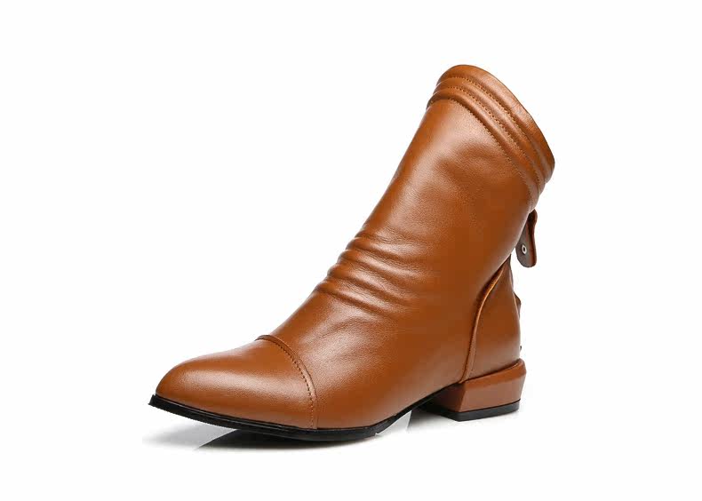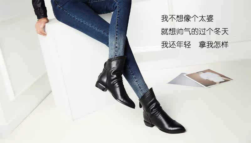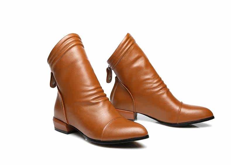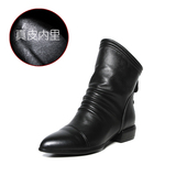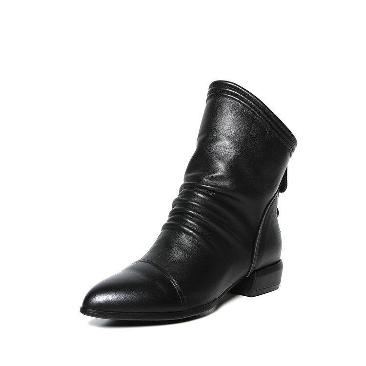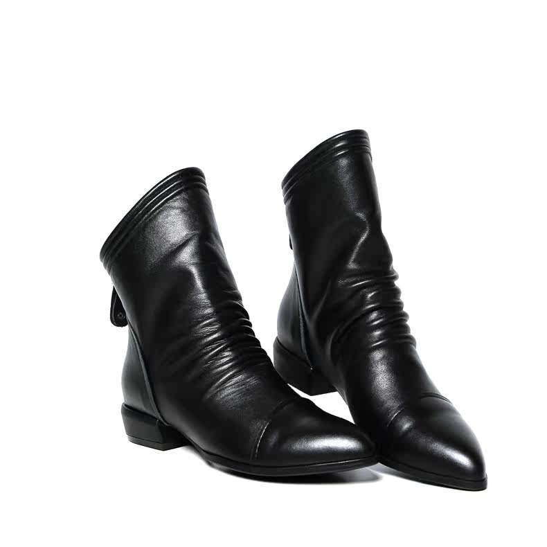 Демисезонные короткие сапоги с заостренным носом, ботинки с молнией, из натуральной кожи